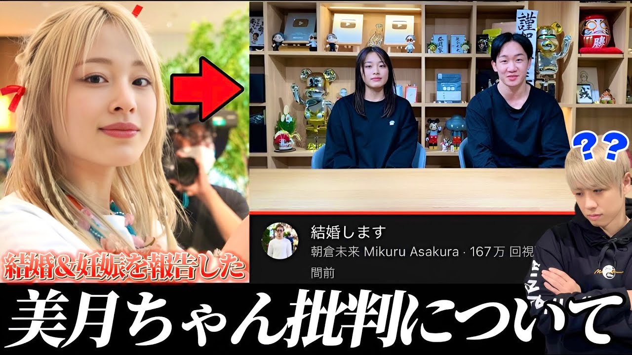 みどうしたのいやどうしたっていうかね 今日はちょっとねあの皆さんにね物モス じゃないけどうんま伝えたことあるんだ けどその前にねあの昨日ねポップアップで もらったミクルさんのサイン飾ってます おおかっけな これってるはいて感じでねちょっとね昨日 のみくるさんの動画でちょっとねすごい サムネがあったんですよああの結婚します とねあれね最初どう考えてもいやみくる さん結婚するのえ昨日俺あんなミクさんに 声したのにえ結婚しちゃうすぐ振られるき さんと結婚しちゃうと思っま俺恋愛 テンションない違女性が好きなんだけどあ そこはいいといいんだけどいやで水希 ちゃんがま妊娠と結婚ということで1回ね あのモデル業とかを休止するって感じだっ たんですけどまその内容動画の内容で コメント欄とかうんうんまTwitter とかがまあれに荒れててうんああね正直ね 俺ま結論から言うとうんなんでって思った のいや分かるわかるわかなんでみんな そんな水希ちゃんを叩くんだっていう やばいよなあの感じまだ叩いてる人の 気持ちもま分かんなくはないんだけど なんかそもそもまずま新しい生命が誕生 するってことやんうんそこに対してまずお めでとだと思うの俺はそううんまその色々 あるのもう信ないし別にそミクさんとか 水希さんと関係とか俺あま知らないし内部 のこと全然知らないけど単なファンだから ただ単純にこう第3者っていうか普通に 客観的に見ておめでとうじゃうんいや 間違いなくそうでしょていう思った俺は コメント欄おめでとうももちろんあった けど半分ぐらいおめでとう全くなかった からひどいコメントば書いてあったからま そこに関して俺はちょっとこう物申したい なと思っていやそれぜひ言った方方がいい よかとかなんかどうしたのみんなていう 確かに思っちゃったの俺なんかミクルさん のファンってなんかそういう人あんまい ない気持ちだったからえと思ってまファン 代表としてまこれは言わなきゃいけないな と思ってまそうだよねそうやっぱあの朝倉 ミクルファミリーが批判されてた時は俺が こう本音を言うっていうのがやっぱ決まり があるからひ君の時とかもそうだし西谷君 の時とかもそうだし駆けつけないとそう そこはちょっとね言いたいんだけどてこと で皆さんね一旦あのチャンネル登録高評価 コメントだけしてもらってもしま俺の意見 がうざかったら解除して大丈夫ですはい そこはて言ったら前回本当に解除してきた 人いたからねて感じで内容は本当それ単純