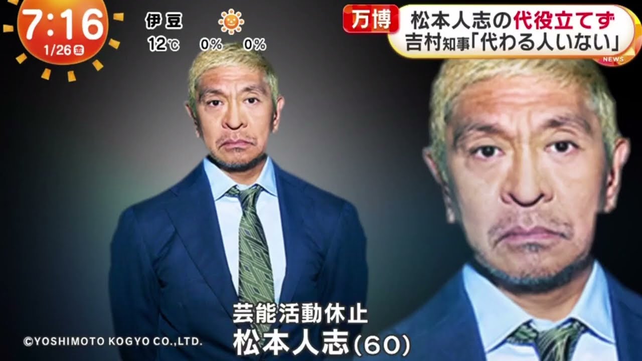 松本人志の代役立てず 吉村知事「代わる人いない」 | 2024年1月26日