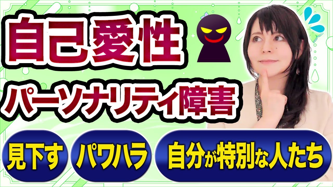 れる情緒的な絆が不足しているがゆえにね 健全な愛着形成が妨げられてですねその 幼い状態のまま社会にボンて放り出される とそれはしんどいですよねこのようにね 精神的に未成熟であったとしても知能が低 いってわけではなくてですね逆に社会でね 立派なち社長とかにいたりとかですね あるいは社会的にステータスが高い仕事に ついているっていういうこともあるんです よま見た目ではわかんないんですねなので よく聞く事件としてはですね社会的に立派 で高級取りの旦那さんが家で奥さんをま DVしてたみたいなことだってよくある わけですこのようにねパーソナリティ障害 っていうのは10タイプに分かれるほどま 全然違うように見えたとしても極端に認知 や感覚行動の偏りがねあるよっていうよう な状態でしたこのパーソナリティ障害の 診断基準っていうのがあってですねこの 全般的なパーソナリティ障害の診断基準に 当てはまっているかつ次に見ていく自己 相性パーソナリティ障害の診断基準に 当てはまっているっていうこの診断には2 段構になっているっていう前提で見ていき ましょうでは行きましょう自己相性 パーソナリティ障害DSM4の診断基準 です今からご紹介する9ののうちに5つ 以上によって示されるっていうことなので 周りの人や自分自身に当てはまってないか なと思ってねちょっと見ていきましょう まず1つ目が事故の重要性に関する古代な 感覚自分自身に対して非常に特別感があ るっていうようなとこですねそして2つ目 が限りない成功権力再起美しさあるいは 理想的な愛の妄想に囚われているどう でしょうそして3つ目が自分が特別であり 独特であり他の特別な人または地位の高い 人たちにしか自分は理解されない関係が あるべきだと信じている次に4つ目が過剰 な賞賛を求める5つ目が特権意識つまり 特別有利な取り計いや自分の期待に自動的 に従うことを理由なく期待する6つ目が 対人関係で相手を不当に利用するつまり 自分自身の目的を達成するために他人を 利用するで7つ目が共感性の欠如これは 他人の気持ちや欲求を認識しようとしない またはそれに気づこうとしない8つ目が しばしば他人に嫉妬するまたは他人が自分 に嫉妬していると思い込むそしてここの爪 が存在で傲慢な行動または態度これらの9 のつの特徴のうちにね5つ以上当てはまる といのが診断基準でしたただし注意して いただきたいのがですねこの診断基準に 当てはまってるからあなたそうだよねとか 決めつけるために見てきたんじゃないん