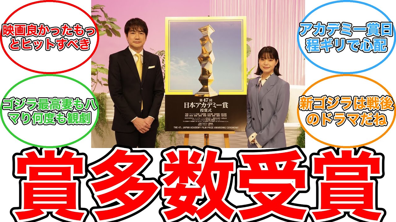 【反応集】日本アカデミー賞「ゴジラ-1.0」席巻 作品賞、監督賞、主演男優・女優賞など12部門で優秀賞