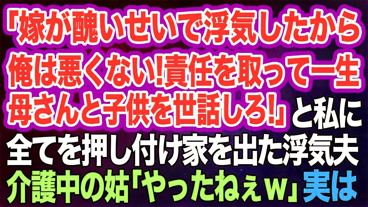「嫁が醜いせいで浮気したから俺は悪くない!責任を取って一生母さんと子供を世話しろ!」と私に全てを押し付けて家を出て行った浮気夫→介護中の姑「やったねぇw」実は【スカッとする話】