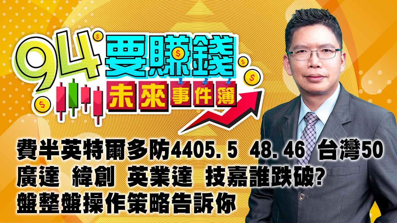 【94要賺錢 未來事件簿】費半英特爾多防4405.5 48.46 台灣50 廣達 緯創 英業達 技嘉誰跌破?盤整盤操作策略告訴你|20240126|分析師 謝文恩、主持人 許晶晶|三立新聞網