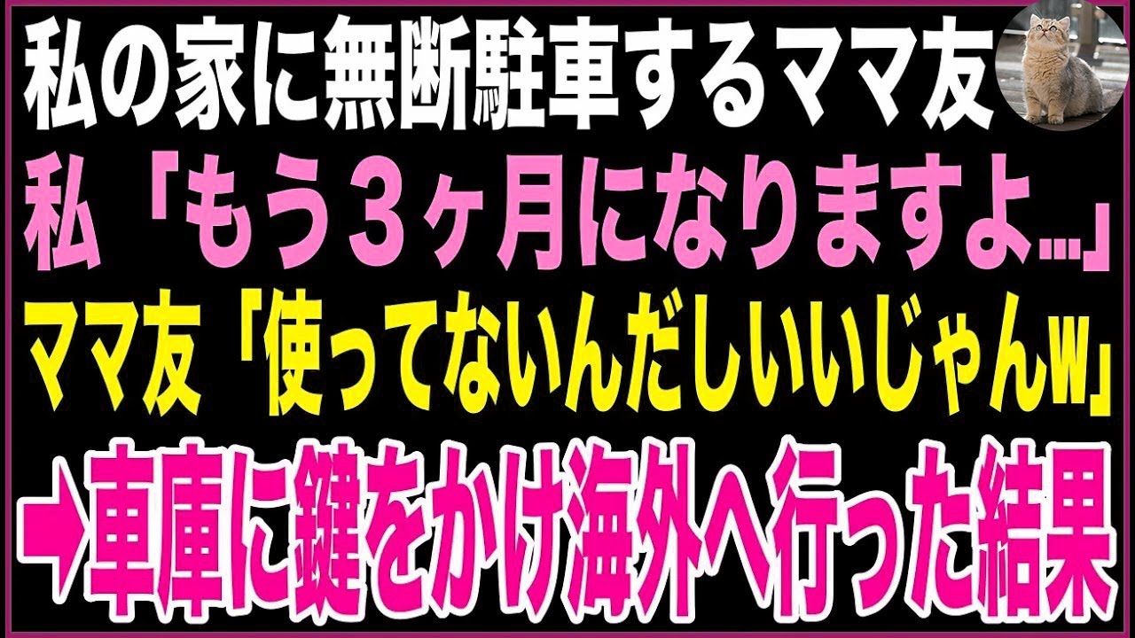【スカッと】敷地内に無断駐車するママ友。私「もう3ヶ月になります…移動してもらえますか?」ママ友「使ってないんだしいいじゃんw」→車庫に鍵をかけ海外へ行った結果