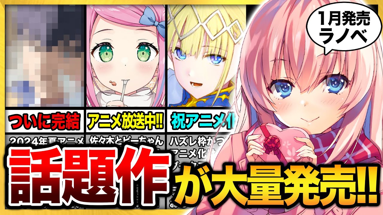 独りごとの合衆が発売となりませイラスト 担当のしの東子先生のインタビューや原作 者のヒガナ先生のメッセージなども掲載 するようですので薬屋の独り言ファンはお 見逃しなく価格としては3000円弱 くらいになってますねそれにしてもね帯に 2700万突破って書かれてるんですけど もう今の時点で300万部突破してるん ですよねいやアニメがパワー恐るべしって 感じ ですはいということで今回は1月下旬発売 の新刊ラノベ紹介でした今回はアニメから ラノベもたくさんありましたし新シリーズ も変わり種が多くて結構いい感じでしたね ま皆さん的に今回ラインナップどうだった でしょうかえ気になる目がありましたら コメント欄で教えてください以上本動画は ここまでまた来週も新刊紹介していきます のでチャンネルの応援の込めて高評価を ポチっとするかもう1本別の動画を見て もらえると嬉しいですそれではまた次の 動画で会いましょうまた [音楽] ね