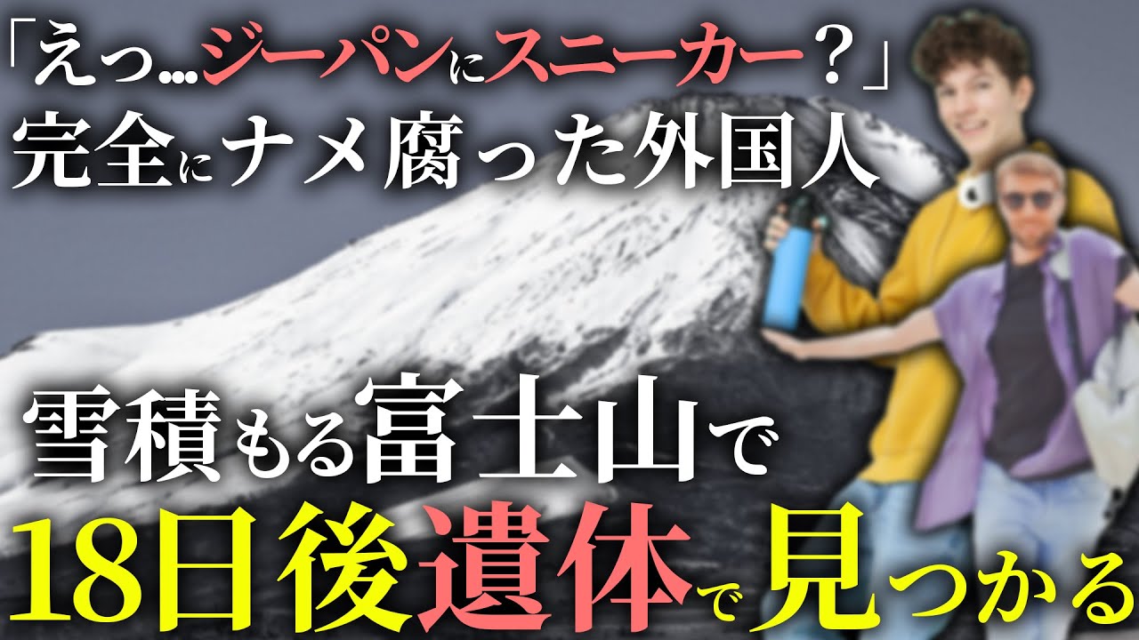 ます2経験不足知識不足外国人男性は 富士山の積器における特有のリスクや登山 の難易度を過小評価していた可能性があり ます富士山は一般的に登山が容易な山と 思われがちですが積雪器には非常に危険な 状況になることがあります3天候や環境 条件の誤解5月の富士山は一部で温かく なり始めているもののまだ積が多く天候も 不安定ながありますこのような条件化での 登山は十分な準備と経験が必要です今回 外国人男性が助かった原因は奇跡に近い 要因が重なったからです第一発見者のC さんが迅速に決断行動したおかげでさらに そのCさんはたまたま英語が得意だった ため外国人男性の状態も正確に把握する ことができ適切な救助を行うことができ ました他にもAさんという登山のプロがた 合流したことなど様々な要因が重なり最終 的に外国人男性が助かることとなりました ただしこのような遭難事故は極めて危険 です違う結果になっていてもおかしくない 状況でしたので登山をする際は常に適切な 準備と行動が必要です以上2012年に 起きた富山外国人遭難事故でしたさて今回 は富士山での事故を一見紹介ました今回 紹介したお亡くなりになられた方のご明服 をお祈りいたしますご視聴いただき ありがとうございました最後までご覧に なられた方は是非チャンネル登録をお願い します
