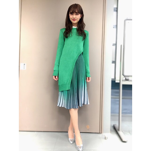 * @berardi_official さんのお洋服 着させていただきました💚 #tbs #王様のブランチ #衣装 #green #熊衣装コーデ #yurina_kumai#熊井友理奈greenKumai YurinatbsYurina Kumai熊衣装コーデ王様のブランチ衣装