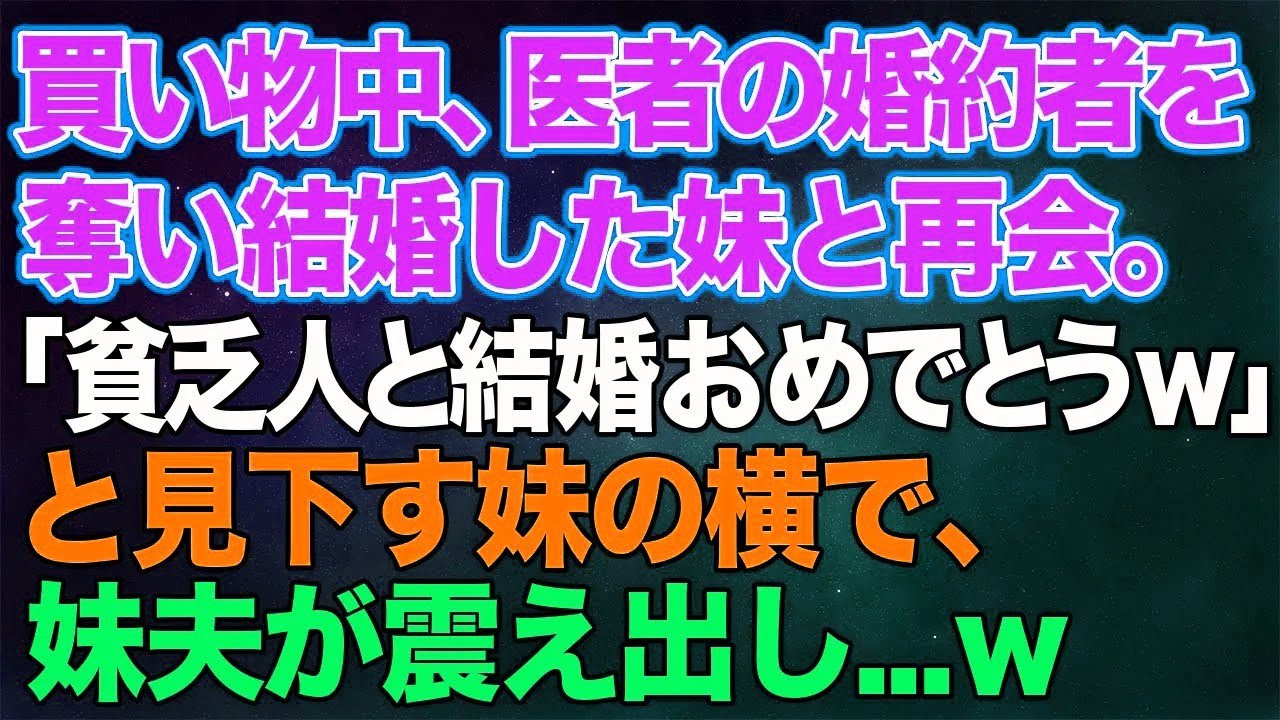 【スカッとする話】夫との買い物中、医者の婚約者を奪った末に結婚した妹と再会。「貧乏人と結婚おめでとうw」と見下す妹の横で、妹夫