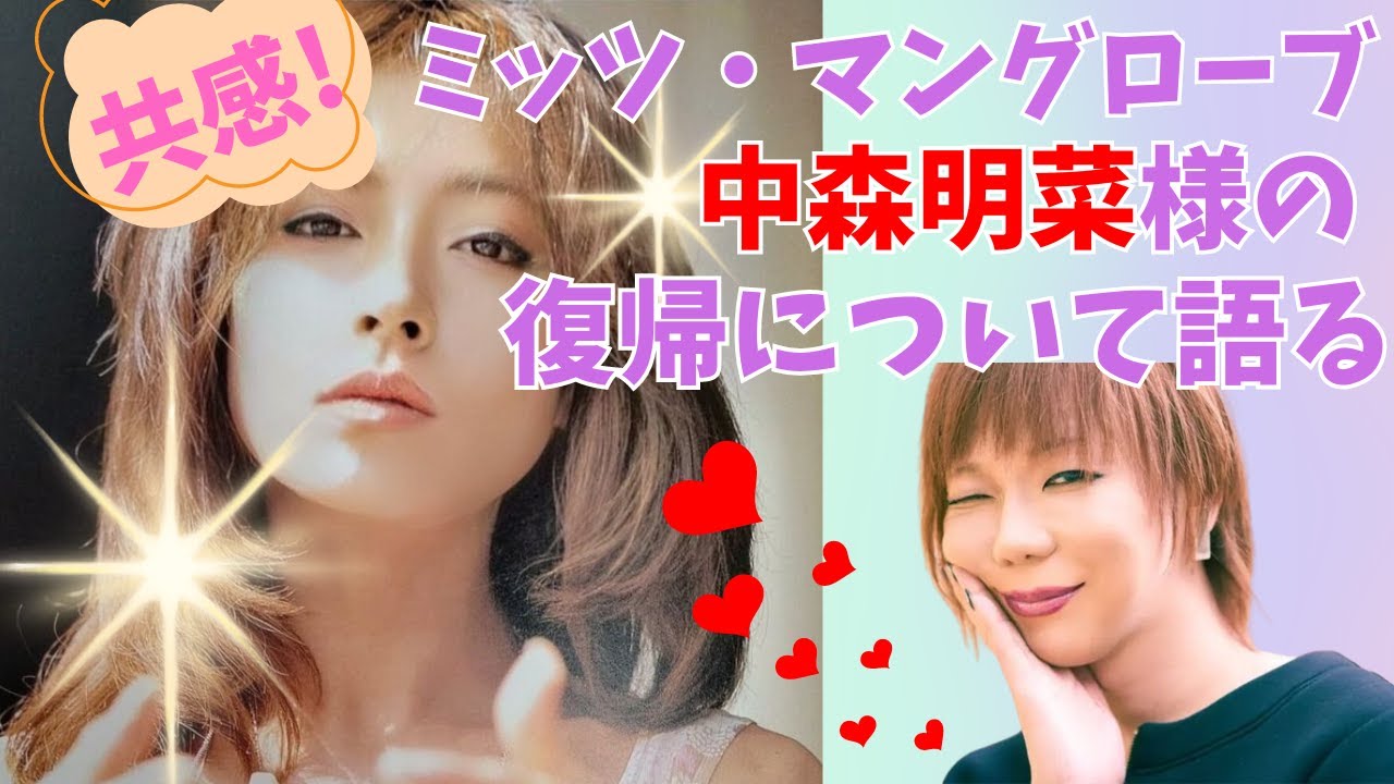中森明奈さんの大ファンとして世間に知ら れている3つマングローブさんそのため 中森あなさんに関する発言はいつも注目を 集めますがあなさんの復帰に対する メディア報道に対して2021年の週刊 朝日の取材で次のように語っていたことが ありますCDを買ったりコンサートや ディナーショーに行ったりするわけでも ない外野の人たちにいよいよ かと30年以上ずっと言われ続けている野 が口にする感情は特に無責任だったりする ものと中森明奈さんが何かの活動で話題に 登るたびにせかしてしまうように加熱し がちなマスコに対して苦を述べています そしてあなさんの現状や健康を気づかった 上でこんな風にも述べていますもしかし たら今さんは本当 はくなのかもしれないじゃないですかだ からその視点や文脈で秋を語るのはもう やめればと思うこの先の秋は無責任な心配 をする世間に向けてではなくコアなファン の前だけに現れる存在でいいのではないか 報道人も呼ばず映像化もせず現在のファン の前だけに現れてくれればいいと思うん ですそしてそのファンと共にこの先どう いう風にランディングしていくかなの でしょうね曲や存在はもはや永遠にわせる ことはないと思うのでと不特定多数の目に さらされるような歌手活動ではなく大下を 支払い今でも心から応援しているファンを 対象にした場だけで歌うのも良いのでは ないかと3さんは提案しています中森明奈 さんはすでに12年以上にわたって赤みや 水宝ができ痛みも伴うウイルスを原因とし た病気体上方針と戦ってきました退場方針 はストレスや疲れが原因で発症しやすい 病気のためミツさんはあなさんに決して 無理をして欲しくないという気持ちもある のでしょうねこれまで中森明奈さんが披露 してきた楽曲や映像は現在CDやDVD YouTubeといったSNSなど いろんな形で私たちも見聞きできますXで はアカウントも設置し時折りあなさん自身 の言葉で話してくれるだけで嬉しいもの です今までも様々な苦難を乗り越え現在 副長傾向にあるからこそパナ様には自分の ことを第一に大切にして欲しいです [音楽] ね