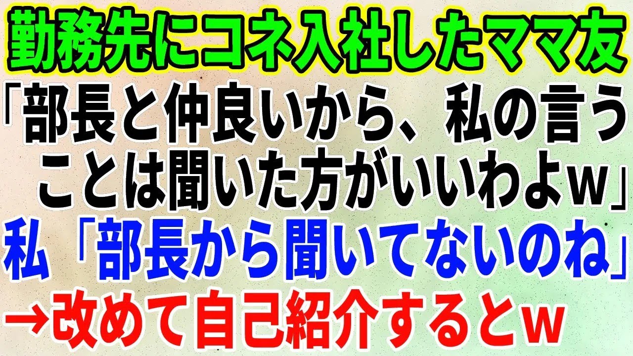 【スカッとする話】勤務先にコネ入社してきたママ友が私の役職を知らずに「私、部長と仲良いから、私の言うことは聞いた方がいいわよw」私「部長から聞いてないのね」→改めて自己紹介す【修羅場】