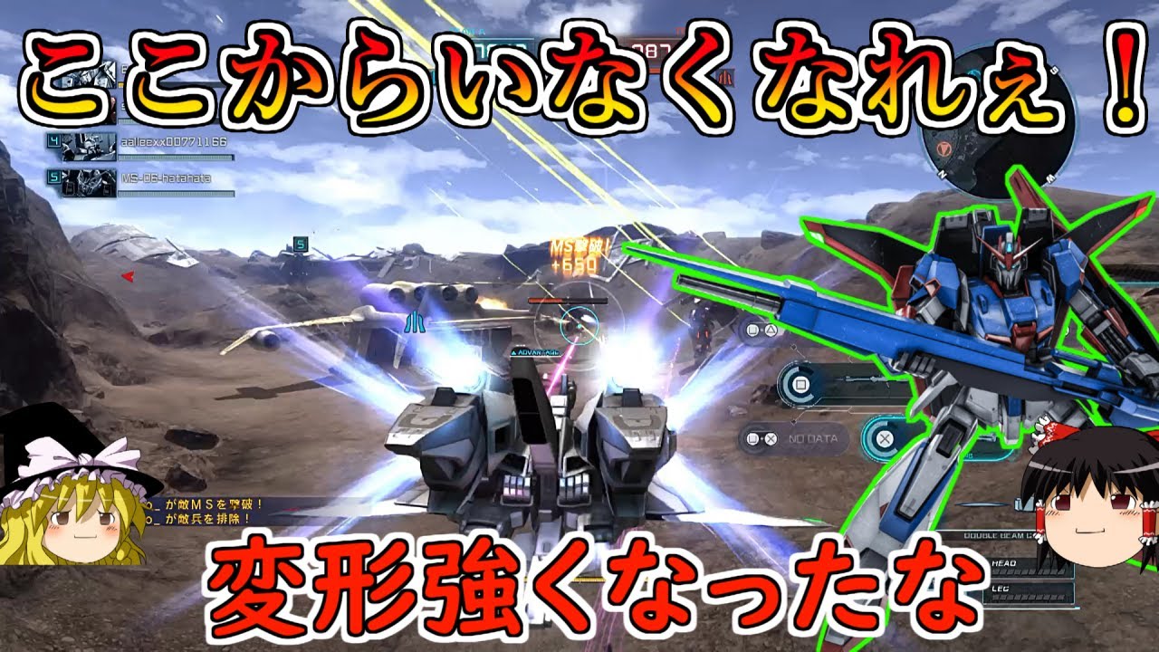 どうも皆さんこんばんは霊夢ですゆっくり 魔理沙だぜ妖夢さんです今回は情報修正さ れたハメがゼタに乗ってきましたよ650 支援最弱をべクエス動画と争ってた30士 の1人なようやく救われたかハメがゼタも なんやかんやちょいちょいと強化されて ますがなかなか環境の中に入ってこられ ませんからな全然使ってる人も見ません でしたし悲しみやで績もね案の定ひどいと 言いますかそりゃこうなるよなって感じの あれ即よけ持ちで追撃のグレランの火力も 高いがそんだけだしなハメがゼタそれ以上 の強みが全然ねえしよこんなんじゃパワー の高い他のライバル支援たちに勝つことは まあ不可能ということだでもですよ今回 強化を施されたおかげでかなり性能 よろしくなってるんでこ互期待よハネガが メガバズーカランチャーみたいになって マップ平気みたいになりましたかいや さすがにそこまではなってないからまずは ですねスキルの強化が来ましてクープロ レベル2ア変形機構最適化制御が追加され ましたどんどんパフパフ変形機構最適化 制御は変形中のスラスター消費量を大幅に 減少させてくれるありがたいやつだな変形 器にとっては非常に重要なスキルですな あるかないかで変形の使いやすさは大きく 変わりますし前までの変形はスラスター 効率悪くて攻撃に使うと離脱分のすら確保 も難しいしクプロもないから変形解除後の 硬直も長くなっちゃうとまあ離脱以外には 使いにくい白物だったけども変わっちゃっ たね変形専用のハメがは威力3500と効 火力出し追撃のビームガンでチュンチュン しながらラムアタックもできると実質的に 使える武装が増えたみたいなとこあるぜ 続きまして武装の強化に入るのであるが 大きく変わったところはハイメガのフチが 1発おばでなくなったところであろうよ あの10秒収束が必要だけど威力8000 を誇る大よけのロマン法ですかそんなこと していいんですかいまあ威力8000って 聞くと強そうだが10秒も停止しながら 収束しなきゃいけないし何より通常時の 重要な即よけであるハメがが30秒も使え なくなるでかすぎるでデメリットがなそこ まで使うもんでもなかったまあまあ封印 安定みたいな白物だったわけですから1発 おばじゃなくなるのはいいかもしれないで も汎用に1万以上のダメージが期待できる 大よけが定期的に飛んでくるかもしれない んよね結構怖いなその世界急に客部を破壊 される恐怖に怯えよレベル2だけ威力も 上昇してるみたいだが火力大好きマン霊夢 がレベル2に乗っていないとは珍しい