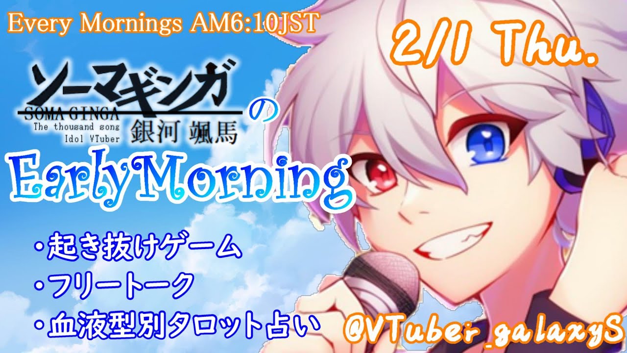 【#朝活 】2/1 起き抜けにゲームと占いと雑談✨銀河颯馬のEarlyMorning【毎朝6時10分から#地下アイドルの #朝活配信/Vtuber/銀河颯馬】