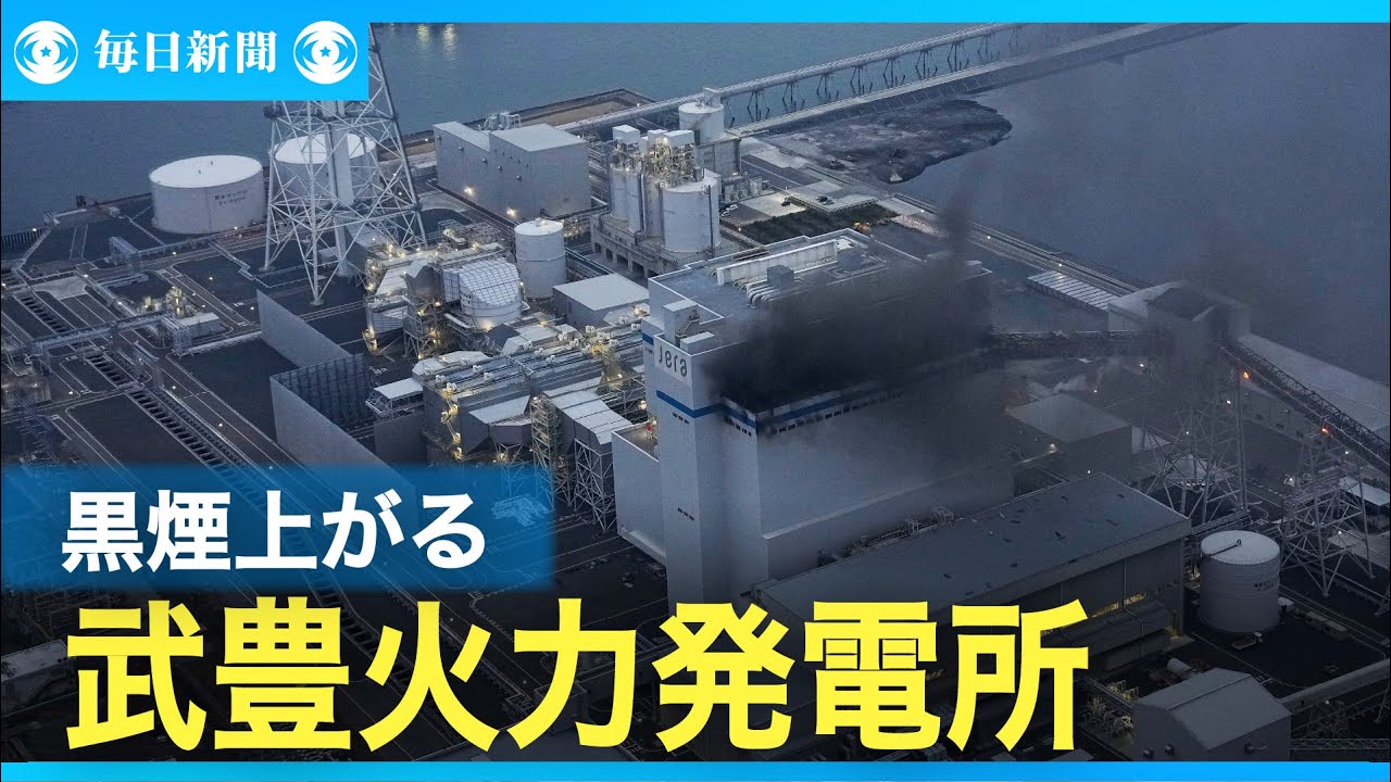 31日午後3時10分ごろ、愛知県武豊町のJERA武豊火力発電所で「爆発音とともに黒煙が上がった」などと119番が相次いだ。消防によると、火力発電所内のボイラー施設13階から黒煙が上がっており、ボイラーに石炭を運ぶベルトコンベヤーも燃えている。消防車14台が出動し、消火活動に当たっている。けが人は確認されていない。【撮影・本社ヘリから】2024年2月1日公開