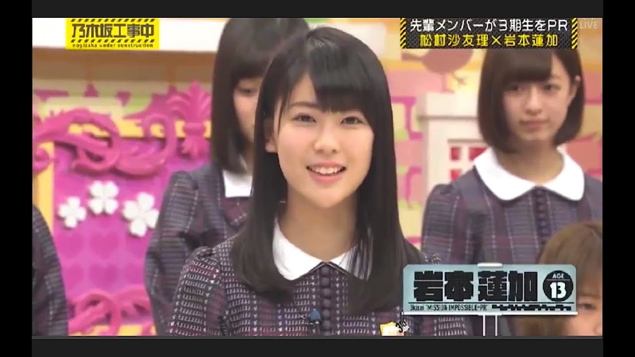 [拍手] 皆さんこんにちはこんばんはれんたんこと 岩本れんです見ての通り悲しいことがあり ましたでも大丈夫5点ってことはあと95 点も上がるチャンスがあるってことだ からみんな電化の応援家始まる よレンたん食ま飛んだら人年指と中指 突き指しちゃっ た人年指と中指大丈夫ピースできる じゃんレたんどうしよう前髪切りすぎ ちゃった大丈夫眉毛を上にあげればいいん だ よ間違いだと思ってること本当は正解なの かも頑張ってるところいつも見てる 落ち込んだ時はじゃあ私が会いに行くよ あなたのネガティブポジティブに帰るよ いつでも笑顔が大事フれフれフれ届けレの 応援かしたばかり見てない で前を向いてくれん かみが止まらないられてるよ夜中に ラーメン食べちゃったケーキも食べちゃえ そしてこのまま走りに 行こう泣きたくなったらじゃん私に愛に いでお腹痛くなるまで笑わせてあげるよ いつでも元気が大事フれフれフれ届け年の 応援最後の3生をしっかりPRできるの か 坂初の 番ガチで決めたらええんですよ川の 呪いメンバーの成長を見逃すな告白の2度 聞きは禁止やれ新たに収録された押や メンバーによるコメンタリーなど 収録乃木坂ってどこDVD発売 中続いては松村先輩と岩本連ペア私が紹介 する3期生は東京都出身中学2年生13歳 の岩本連下ですよろしくお願いしますお 願いします13歳はい乃木坂最年なので皆 さん優しくしてあげてください年松村いく つだっ私24でエが何年ですか猿です私猿 年なんです周り違うんですあそはいそんな ちゃん実はヒップダン新をやっいて結 アクロバットなことが得意へえ新体操その アクロバットな技の1つでもある連転を連 って岩本の特技謎の連転とはオじゃははい どうぞ おおマなるほどなるほどこれはすごいわお すごいこれが回転ですおこれはすごいねね ちなみにこの連回転はこのレカちゃんの 名前にかけて私が考えまし たうんまあそうだろうな多分そうねそして レンカちゃんもう1つ特技がありますいや 教えてギターですああれギターあれ誰か やっなかったっけはい向かさんねギター もうもう紹介しちゃったけどそうでもムカ さん結構なんかギターと言ってもお笑いの