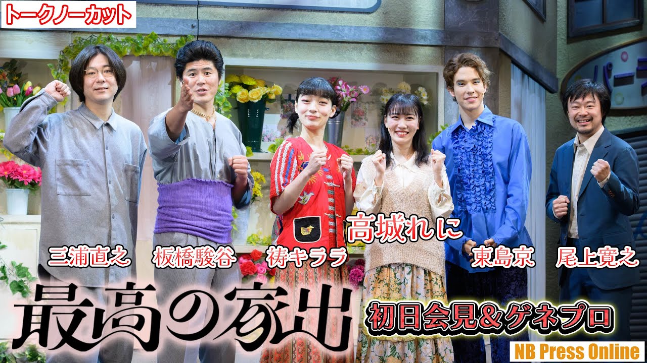 ましたで あの高木さんも今回あのきっと僕とも 初めてだしきっと初めてのことで最初こう 不安になることも多分多かったと思うん ですけどでこの登場人物の放棄っていう キャラクターもその日常生活にこう ちょっと疲れて家出をしてでいろんなこう 悩みとか不安を抱えながら最初出てくるん ですよねででそれがだんだんだんだん物語 を通じてこう笑えるようになっていく法規 がでそなんか稽古してすごく感じたのが その放棄が笑う瞬間とこう高木さんが笑う 瞬間がぴったり重なる瞬間を感じることが 稽古の効果がすごく増えていってあああ 笑ってくれたっていうのを本当にこう稽古 みなが何回も感動したんですよねだから 本当にあの高木さんの笑顔はすごくこう見 ててめちゃめちゃ感動するからあのこの 本番通じてたくさん笑ってもらえたらなっ ていう風に思ってい ますありがとうございますえっとそれでは えっと皆様にもう一度え質問させて いただきますえ今回のタイトルが最高の 家出というタイトルになるんですけれども えそちらの皆様にえっとちんで皆様 それぞれの ままを教えていけますでしょうかじゃ三浦 さんからお願いできますでしょうかはいお 俺あのすごい真面目な感じになっちゃうん ですけどあの引っ張られないであのふざけ てもらった方がはいあの 僕それもハドであげるからごめんなさい あのえっと僕あのこれ書いてる時ずっと えっと僕実家宮城県なんですけど宮城の 実家でずっと書いていてでその時にあの めちゃめちゃ支えてもらったのであの最高 の感謝でえっと両親とあの姉と弟ですねに あの感謝を捧げたいと思ってい ますどその頃めっちゃじゃないですか最後 にする べきがかったありがとうございますしまっ たなおさんいかがでしょうかちょっとこの 後なかなかあれなんですけどでも私は最高 の食べ物っていうのでここ1のカレーです 私はあ本当にここ1のカレが大好きでこの 傾向期間もま断るごとにうんこうあの出前 でUberあのバここ一を頼んだりだとか あの本当にゆこう楽しみにここ一を楽しみ じゃあお稽古頑張ろうとかお休みの日とか もこう初めて店舗に行ってみて食べたりだ とか本当になんかこの舞台中はカレーと共 に過ごしてきた の見出しそれだけになっちゃったこれの いろんなウブ媒体と見だし 食べ物としてはすごいカレーをたくさん