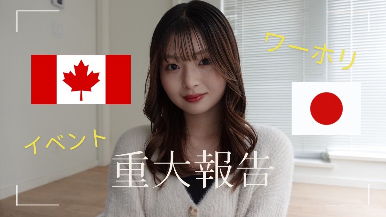 エプリ皆さんこんにちはエのこですはいと いうことで今日はですね皆様にご報告が あり ますはい去年の2023年の3月の半ばに 私えっと人生最大の決断をしましたって いうYouTubeを出してそこでカナダ 1年間行ってきますっていうあのご報告を させていたいたんですけどきっと皆さんの 中で1年で帰ってくるのとか延長するのと かいつ帰ってくんのとか特に最近はあの 結構DMとかでもってきたらイベントで 会えるよ会えることを楽しみにしてますと かインスタライブとかやってる時でも すごい結構皆さん気にしてくださってる方 が多くてこれはしっかりね私も報告したい なっていう思いもあるので今回動画を通し てなんですけれどもご報告させていただき たいと思いますえ元々2023年の4月1 日にカナダに来ましたで私が来たビザが ワーキングホリデービザっていうビザで こっちで就労できるしま学校も行きたい人 は行けるしま結構自由なビザなんですけど もう1回ワーキングホリデーを延長しよう と思ってセカンドワーホリっていう種類が あるんですねカナダには他の国にもあるの かちょっと私は分からないんですけど カナダにはワーキングホリデーの後に セカンドワーフリをすることも可能で セカンドワーフリの場合はもうワーキング ホリデーと全く同じ種類になるのでワーク ビザを取ってしまった場合はその雇用主 から決められた場所でしか働けないんです よだから例えば日本で言うとガストで ワークビザをいただきましたってなったら ガストでしか働けないんですけど普通の アルバイトだ社員みたいな感じになっ ちゃうんですねワークビザってでも普通の そのワーホリビザだといろんなところで 働けるしその働く制限時間給料の制限も ないしっていうちょっとすごいフリーな 感じで掛け持ちも可能みたいな感じで なんかまだまだ私はいろんなところで勉強 したいなっていう思いもありましたし ちょっとねセカンドワーホリ取るにも色々 大変だったことはあるんですけどそれを 含めてあの色々考えた結果セカンド ワーキングホリデを撮ることにしました はいなので私のビザが4月からというか まあ3月ぐらいからまた1年間伸びる形に なったのでちょっとねもし日本で待ってい てくださった方がいらっしゃったらすごく 残念な思いにさせてしまったら申し訳ない なっていう思いもあるんですけれどももう 1年カナダで頑張ろうと思いますはいなの でちょっと今年帰ってきてくれるかなとか