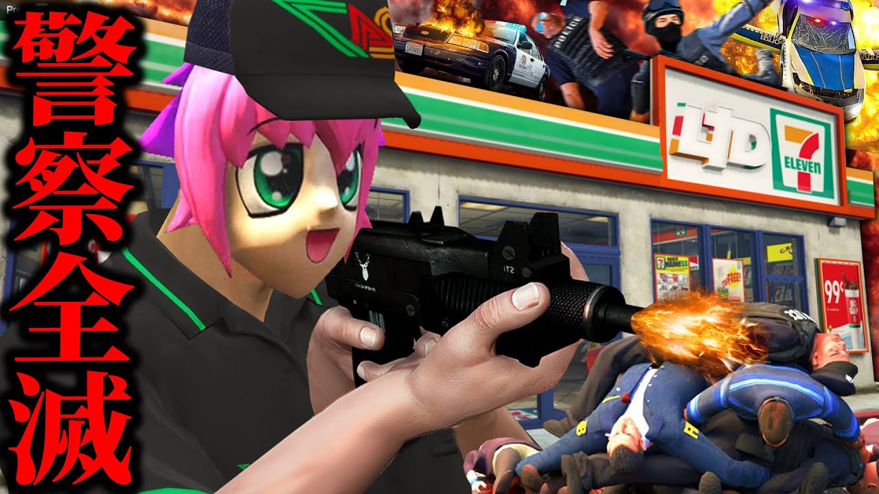 コンビニを大爆破させ大量の警察官全滅させたら国際指名手配にwww【ストリーマーグラセフ】【GTA5グラセフMOD】【スト鯖】