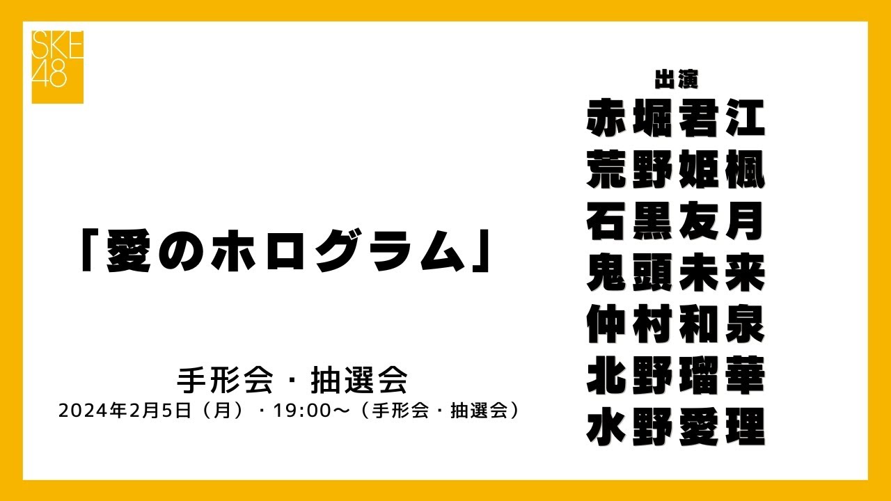 2024年2月5日(月)19:00~(手形会・抽選会)SKE48 2024年2月28日(水)発売32ndシングル「愛のホログラム」
