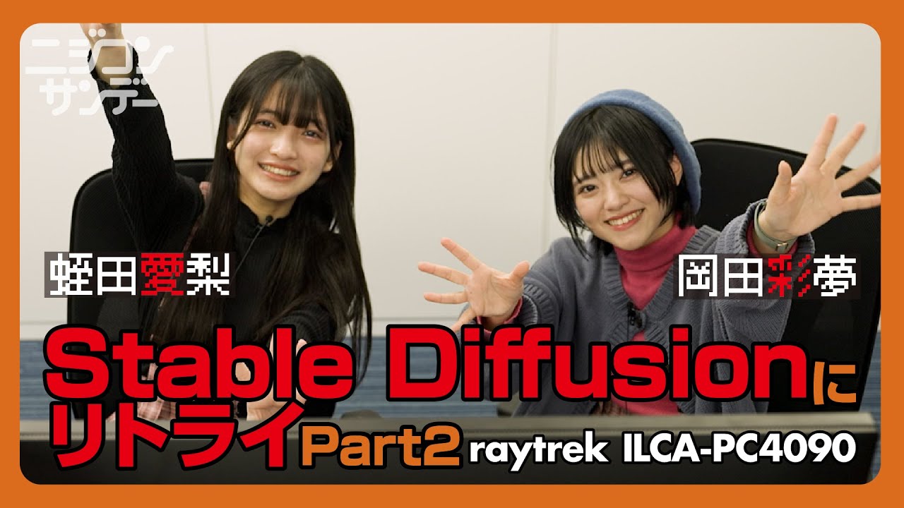 第13回目は、虹のコンキスタドールの岡田彩夢と蛭田愛梨が、StableDiffusionにチャレンジしてみました。