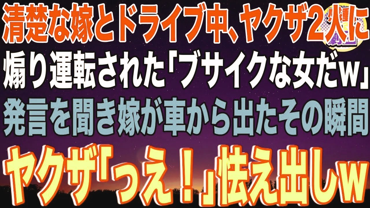 【スカッと】清楚な嫁とドライブ中、ヤクザに煽り運転された「ブサイクな女だw」発言を聞き嫁が車から出たその瞬間…ヤクザ「っえ!」怯え出した→実は嫁の正体は…