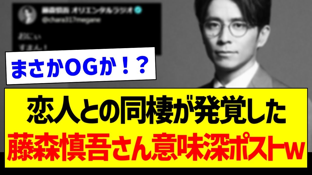 恋人との同棲が発覚した藤森慎吾さんが意味深ポストw【元乃木坂46・坂道オタク反応集】
