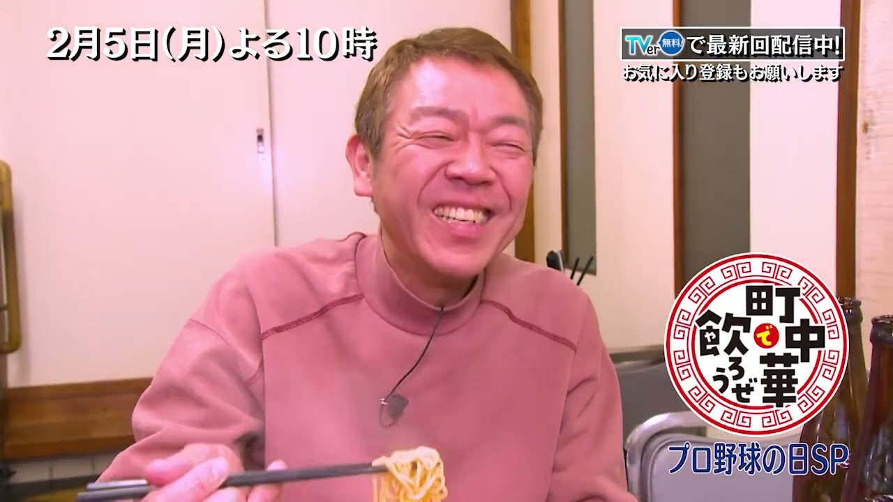 TVerで配信中「町中華で飲ろうぜ」2/5(月)よる10時は、プロ野球の日SP!ジャイアンツ球場の近くで玉ちゃんがとことん飲っちゃいます☆BS-TBS