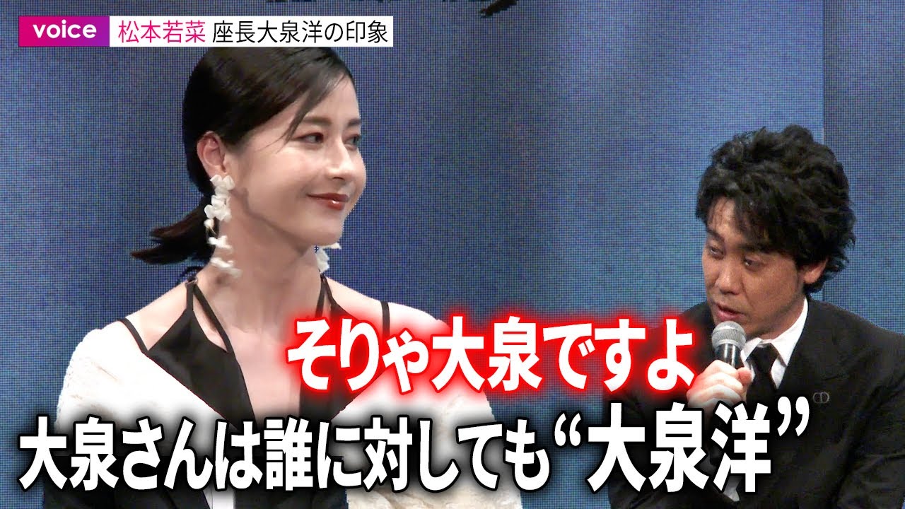 王子役松本若名さん [拍手] です えっと昨年ですかねえっと撮影をしました えっとまかなり寒かったりもしたんです けれどもでもうんその寒さも味人も感じ させないような えっと素晴らしい演者の皆様とそしてあの 入江監督と一緒に作り上げてそして本日 こうやって様の前に立ててるのがすごく 嬉しいですえっと私もどちらかというと 小人数系の撮影ではあったので今受けした 大爆破とかちょっと盾とかっていうところ はま私あの友助の役なのでどうしてもあの 設定として違う場所にいたりもするので そういうシーンはなかったんですけれども だけど う監督今回なんか風にこだわられましたよ ねそのはいえっと木が売れるそのちょっと それも小さめのえっと扇風機ではあったん ですけどそれちょっとしたその木々の揺れ 方1つ1つをものすごくこだわっ てらっしゃったのでそういう小さい1つ1 つのこだわりがこうやって大きなスケール になってるんだなって思うとあの全体を 早く見たいなっていう楽しみははい広がり ました松本さんのところには小さな扇風機 がそうですさんには巨大な扇風機がで私も 巨大な扇風機には吹かれましたあそうです かわちゃんも吹かれたの吹かれました本当 に聞こえないですね聞こえない聞こえない ですセリフ聞こえないんですよ大泉さんと はにえっと映画では2回目あそうですね はいその時も座長でいらっしゃったんです けどその時から変わらず誰に対しても大泉 よなんですよ大泉よなんですかはいそり そうですよねこの人にはマイケル ジャクソンでいるとかそういうわかったな 大体おみようなんですよそうですねなんか 誰なんかこう気遣いの方なんですけどその 気遣いを気づかせないようにするっていう 感じの方だなっていう風に思っていてだ から今回もとてもうんなんか心で助けて もらいましたそうですかはい