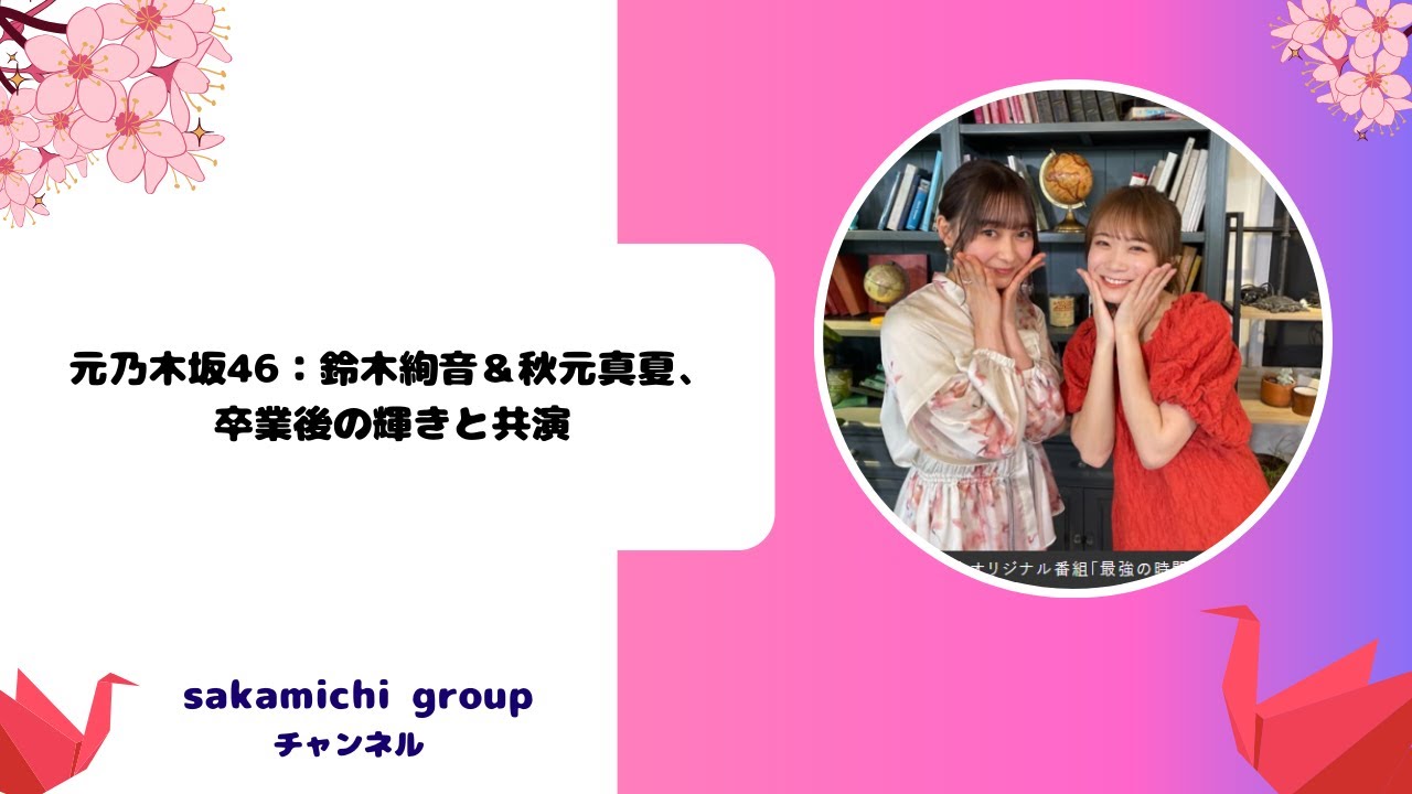 さんが突然大きな花束を携えて登場本当に ありがとうございましたという言葉と共に 花束を秋本さんに手渡しましたこの サプライズに秋本さんは感動の涙を流し ました鈴木さんは涙を耐えながら感謝の 思いを伝え秋本さんもありがとう私も 大好きと涙ながらに答えました2人の絆は 乃木坂46として共に過ごした時間を超え たものでありこの瞬間は多くのファンに 感動を与えましたそしてこの歴史的な瞬間 にファンからは戦友だあねちゃんがまみ 送るのなける多くの感動的な反響が寄せ られまし た鈴木綾さんと秋本真さん2人の道は 異なりますが彼女たちが残した足跡は 乃木坂46とそのファンにとってけえの ない宝物です卒業後初共演鈴木綾&秋本 真夏乃木坂46を卒業した後それぞれの道 を歩み始めた鈴木綾さんと秋本真さん しかし彼女たちの絆は時間を超えて強固な ものでありフーバーでの共演はその最高の 証明となりましたこの共演は乃木坂46と して共に過ごした時間クラを共にした経験 が2人を新たなステージへと導いています 私たちは2人がこれからも自分たちの夢に 向かって前進し続ける姿を見守り応援して いきます鈴木あさん秋本真さん2人の今後 の活躍に期待が高まります皆さん今回の 特別編をご覧いただきありがとうござい ました鈴木綾さんと秋本さんの新しい一面 をお楽しみいただけたでしょうか彼女の 今後の活躍に引き続きご注目 くださいご視聴ありがとうございました 是非チャンネル登録いいねお願いします それではまた次回の動画でお会いし ましょう皆さんさようなら