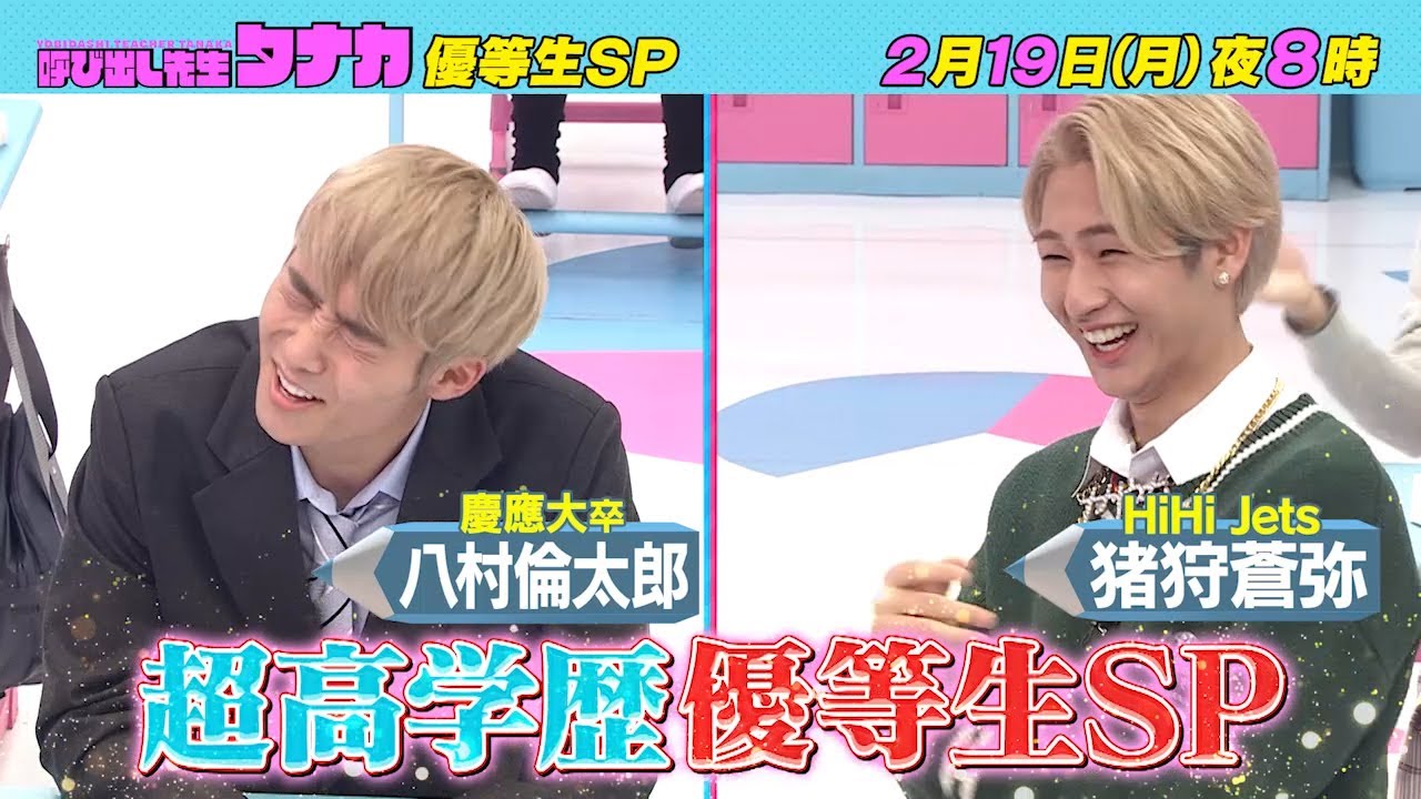 2月19日(月)よる8時放送!『ライバル対決勃発!?HiHi Jets・猪狩VS慶応卒・八村』 優等生だらけハイレベル国語SP|呼び出し先生タナカ|フジテレビ公式
