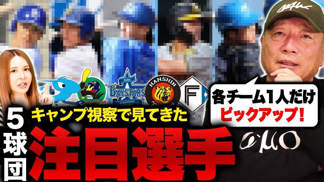 [音楽] こんにちはつたさん前半沖縄5球団回って きましてま前回の動画ではカメラとか テレビでは映し出されないようなこういい 側面というかこんな球団でしたよちょっと コメントを控えた選手もいるからね隠し もっとわないとそうですそうですで今日の この動画では豊さんが5球団回って それぞれ1人だけ注目選手をピックアップ してもらいました1人だけだからなそうな んです見てこの選手このキャンプで良かっ たよという選手を5名ですねではまず中日 から行きましょうおお行くはい中日から まあね2刊に目が行きがちだけどうん行き ますやっぱりこう集中的にそこも練習させ てるんだよねうんだけどフリバテ見てて 変わってきたなと思うのが三ああ三選手 はいうんあの方をなんか近本のような阪神 のねまそんな感じで打ってるんだけど誰か のアドバイスとか自分で見つけなんかま 加藤がとか言ったみたいだけどへまだけど それがちょっとはまりつつあるんだよねあ じゃあ自分の中でもしっくり来ていや しっくり来てるんだと思うよああいう感じ で打てるっていうのははいうんだから見 しっていうのが出てきそうな気はするよね ま外野争いにすなとなるんですよねそう そうまポジション的にはまレフトなのか なっていうような感じはするけどもあ 外国人だ競争があるんだ競争があるであの 外国人もねなかなかいいんだよあそうだっ たんですかま守備はそうでもないけども やっぱ打つことに関しては俺はいいと思う んだけどもそこに見しが入ってきていや美 を使いたいなってなってくるようなうん そんな感じもあるねその美選手のこれまで のバッティングとそのキャンプで変えてき たっていうそのバッティングどこに良さを 豊さん見ていてうんましたまそうだ コンタクト率が上がったというかさうんで やっぱりね角度によってスムーズに触れる か触れないかっていうのはあると思うんだ けどそれがなんかこうスムーズさが出てき たというかさうんはいまそんな感じはする んだよねちょっと去年まではそのスムーズ さっていうのが自分の中でこう打ちたいと かああ打ちたいとかあったと思うんだけど もうんでもそれがなんかこう自分の体の 仕組みにあったというようなそんな感じが するんだよねその片岡ヘッドコーチがその 近本選手みたいな打ち方っていう風に アドバイスてその近本選手の打ち方って いうのはどういうことま多少こうやって 煽っていこうとするんだけどもそれの コンパクト型というかさまちだ打ちたって