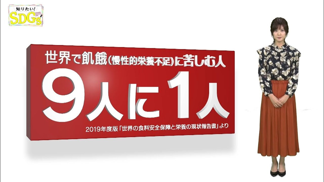 飢餓つまり慢性的な栄養不足に苦しむ人は 世界で国人に1人飢餓のない世界を作る ことは私たちの時代に課せられた大きな 課題の1つですサステイナブル ディベロップメントゴールズ通称 sdgs2030年までに国連加盟国全て の国が達成すべき持続可能な開発目標です 世界レベルで取り活動とはその先にある ゴールと は知りたいSD GS本日取り上げるSDGS は飢餓を0 にこれは飢餓を終わらせ食料安全保障及び 栄養改善を実現し持続可能な農業を促進 する目標を掲げたものです そもそも飢餓には2種類あります1つ目は 突発的な基金自然災害紛争などの突発的な 原因で食料が急激に不足し重度の栄養不足 に陥り餓死することもそして2つ目は慢性 的な飢餓です栄養のある食料を継続的に手 に入れることができず栄養不足に陥って 病気になり死に至ることもあります慢性的 なガは栄養不足人口の大半を占めているの に一般的な認知度は高いとは言えません 慢性的な飢餓の解決のためには総合的に 取り組むことが必要ですが栄養知識の普及 これもまた重要な要素 です世界各国で慢性的な飢餓の解決に 取り組んできたハンガーフリーワールドの 田さんは栄養知識の普及についてこう言い ますて食事の量は十分でも栄養バランスが 悪い食事が続くと様々な病気につがって しまい ます西アフリカベナンのベト村では栄養の 偏った食事や子供の消化吸収が難しい調理 法などが原因で3歳未満の栄養不良が問題 になっていまし たそこで地元で手に入れやすい トウモロコシや大豆ピーナッツなどを使い 栄養バランスに優れ消化吸収 の作り方を 指導栄養の知識を教えるだけでなく生活の 改善に取り組み結果2017年からおよそ 2年でベト村の3歳未満の栄養不良は63 も回復しまし た住民たちは以前は子供が病気ばかりして いつか死んでしまうのではないかと心配し ていたので本当に良かったと話してくれて います飢餓の根本的な解決には我を 生み出す仕組みを変えることまた飢餓に 直面している人たちが自らの手で将来に わって食料を得られるよう事実への支援が 必要です私たちは全ての人が食べられる 世界を作っていきます栄養のバランスも そうなんですがやはり知識や教育これが
