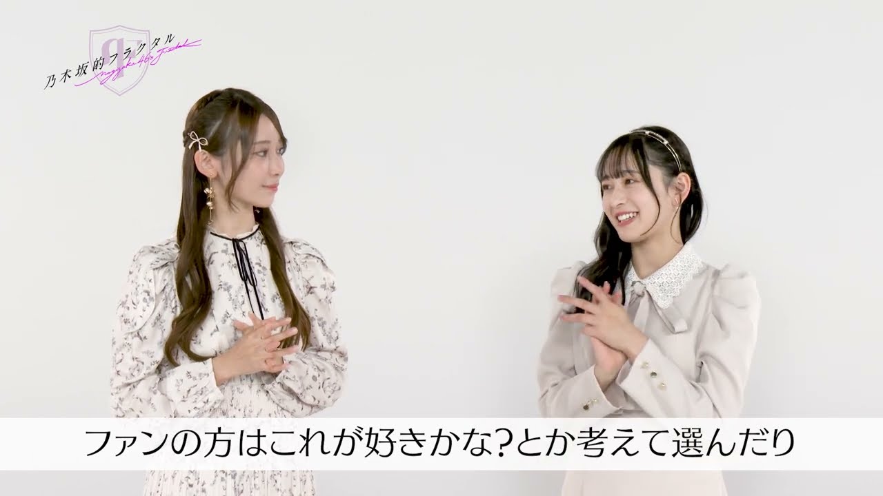 乃HUMANをプレイしていただいている プロデューサーの皆さんこんにちは乃木坂 46の向井はきと同じく乃木坂46の黒み はかです皆さんのおかげで乃木坂的 フラクタルはリリースから2.5周年を 迎えました2.5周年ありがとうござい ますありがとうございますえミンゴは なんか乃木のこうイベントとかなんか 思い出に残ってることあるえなんだろう あれですねやっぱりあの 乃木坂劇フラクタルのリアルイベントうん うんかなって思いますやっぱりファンの方 に直接会えるっていうのは1個嬉しいなと 思いますし実際この方がプレイして くださってる姿ってどんな感じなんだろう みたいな予想しながら見れたりあと衣装 切れるじゃないですかうんうんうんなんか それがすごいいいなと思っててわかる自分 でさ好きな衣装を選んでさてねそうです どういう衣装が好きですかなんか結構 可愛い系とか大人っぽいとかあるじゃない ですか私は結構大人っぽいのが好きででも ファンの方はなんかこれが好きかなとか 考えてちょっとそういうのも選んだりして うん確かにそうですよねなんか私たちが 好きなのもあるしファンの方が喜びそうだ なみたいな衣装もあるしっていう感じです よねうんそうとかなんか色々差し入れお 土産とかあるじゃん確にあもきっと喜んで くれてるだろうなって思って確かになんか メンバーによってだいぶ個性出ますよね そうもうみんなのイベント個人イベントに 行ってほしいぐらい盛り上がっています はいということで2.5周年を迎えたフラ ではプロデューサーの皆さんにやんで いただけるようにたくさんのプレゼントや キャンペーンをご用意しております皆さん 是非ナフラ2.5周年を私たちと一緒にお 祝しましょう引き続き坂的フラクタル坂 46の応援をよろしくお願いしますバイ バイバイ バイ
