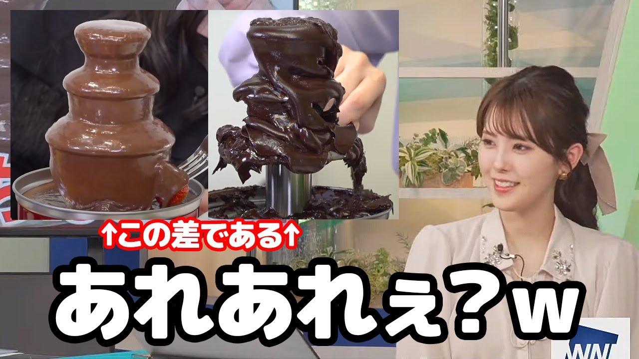 【小川千奈】おゆいももぴん動画とのチョコレートファウンテンの差に唖然とするもスタッフを気遣うお天気キャスター