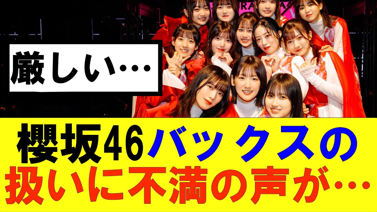 桜坂46マックスの扱いに不満の声 が先日発表された仮称メンバーこれに対し 反応は桜坂御三家がそれぞれ後輩を 引き連れてのユニットか大きくなったな みゆちゃんにアイドルソングいいじゃない ジカはフロントでユニットか面白い 組み合わせだねとユニットに対してはこ 意見が多いが めっちゃ楽しみなユニットただバックスの 1気に期はこのシングルで1局しか参加 できないのかバックスメンバー音の私は 泣いてもいいですかもっとたくさんの メンバーが参加するのを見たい自分 バックスメンバーをし不満でるのは分かる 本当に分かるスモミーグリ毎回一時完売な のにユニットなしとかなかなか 残酷参加曲数の異常な偏りは8時代から 本当変わらんだ偏りがあるのは仕方ないと 思うし領導主義なんて綺麗事でやれる世界 じゃない1年通してみたら案外バランス 良くなってる可能性もあるよ推しメイ1曲 は悲しいぞ普通に