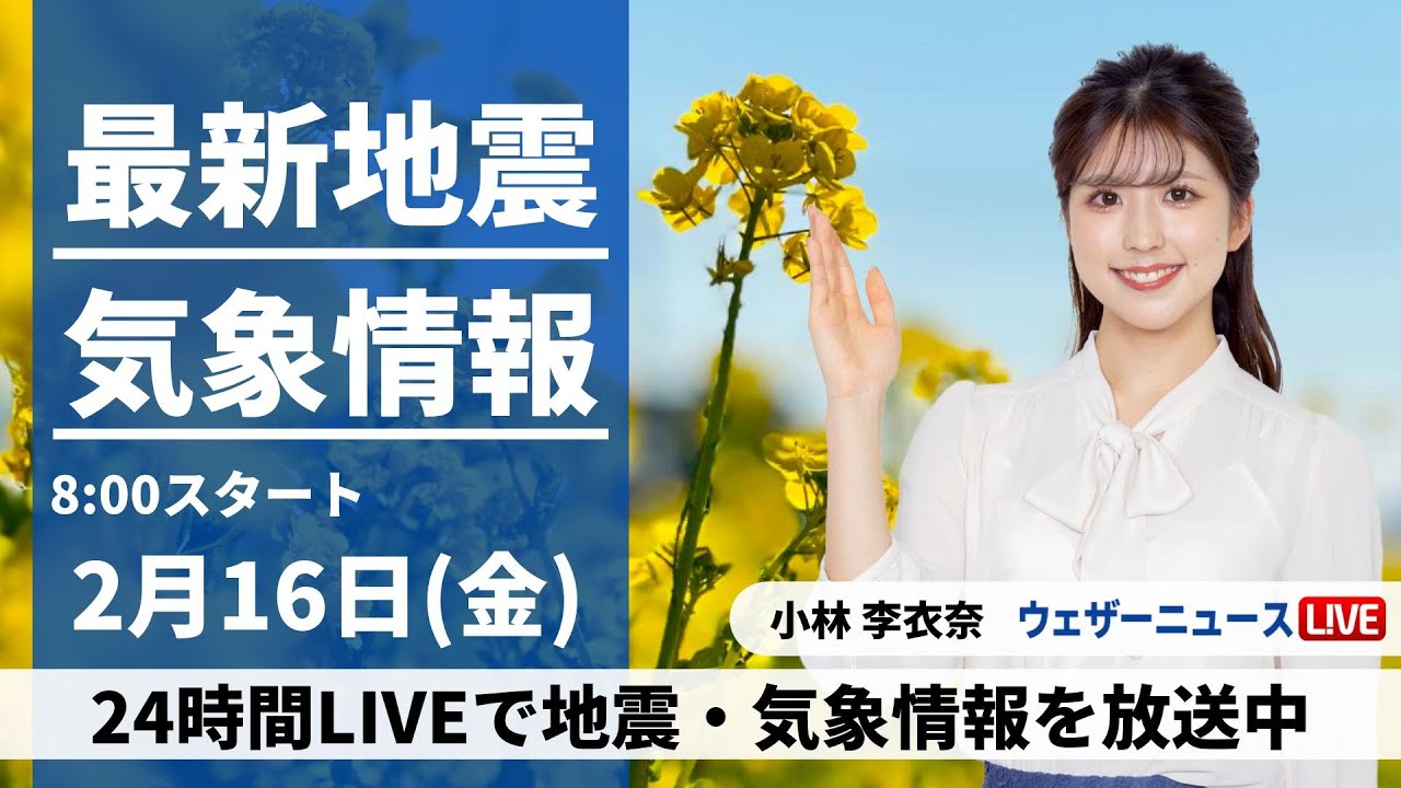 【LIVE】最新気象・地震情報 2024年2月16日(金)/北風強く、昨日との寒暖差に注意<ウェザーニュースLiVEサンシャイン>