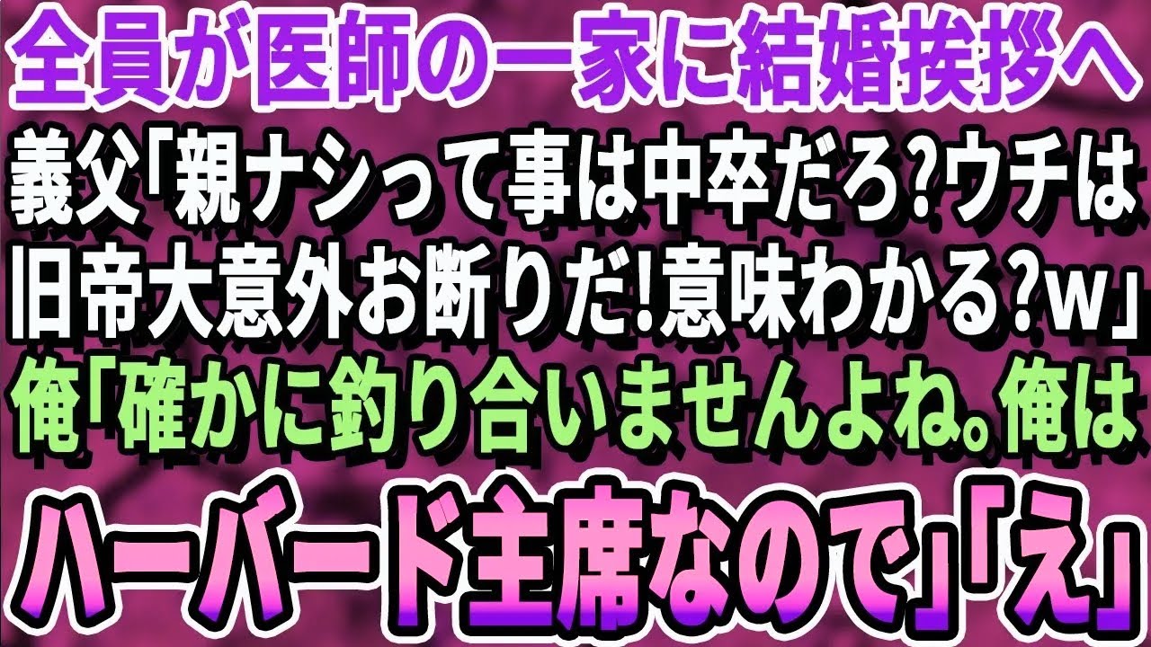 【感動】 一族全員が医師の彼女の実家に結婚挨拶に行くと、義父「両親がいない?てことは低学歴か!大学も出てないような底辺がよくうちに来れたなw」彼女「お父さん、彼ハーバード大学卒よ」【いい話・朗読