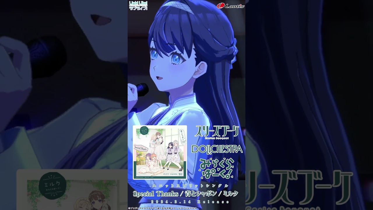 2/14(水)発売、スリーズブーケ&DOLLCHESTRA&みらくらぱーく!「Special Thanks / 青とシャボン / ミルク」SPOT #蓮ノ空 #リンクラ #lovelive