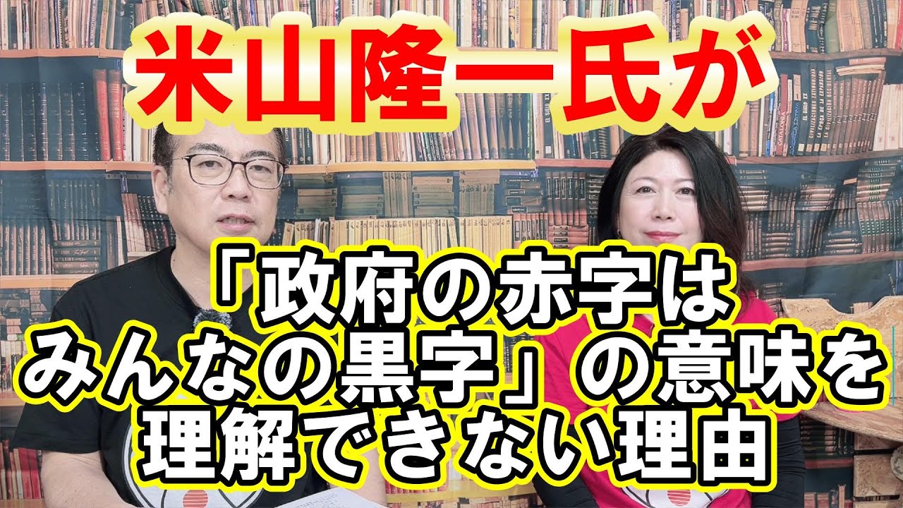 さん100万ありますよとでダイナさんが そのうち50万しか使わず50万で国債を 買ったので収入が質収入100万が質 50万より大きいから黒字なんですよ意味 がわからへん意味がわからないですよ意味 わからへんしそんな100万円もらったら 50万もしも余ったら貯金するぐらいの話 で貯金の代わりに国際を買いましたって話 なのかなっていう気もするんだけど ちょっと意味がよくわからないですよね ちょっとわからへんねうん分からへんから どう言うたらいいかもわからへそうほんで ね多分ねこの米山さんていう人の うん生というね大学の先生がずっと反論し てるんだけれどもそれに対して米山一さん がまた反論してるんですけどこういうこと を書いてるんですね富はマクロ経済で言わ れている罪と言われているものです赤字 国際発行を伴う経済政策で間接的に財が 増えることはあっても国際の発行それ自体 は通貨を民間から政府に移すだけで財を 生みません当たり前のことでって言ってて うんま要するに国際の発行それ自体は 新しく通貨を民間から政府に移すだけで財 を生みませんま国際発行しただけだったら それは確かにお金が動くだけだから新しい 財が生み出されてるわけじゃないよねって それはその通りなんですけども我々が言っ てんのはこれのん後に財政出動するとそこ で新しく預金が生み出されますよねうん って言ってるわけですよそこで信用の想像 っていうのが起きますよねとだから国際を 発行することによってそして財政出動して 財政赤字を拡大することによって結果的に 民間にお金が生み出されますよねって言っ てるのでそこを分かっておられないのか それともわざとそこを無視して話を進め てるのか うん悪質ですよねうんまねや誰にも理解が できないと思うねんのパ先生に言ってる ことは正しいでしょパ先生に言ってること は正しいでまそれで思い出したのは前参議 院選挙に僕が出た時に新藤国森の共同代表 でねあの時出ててで賛成党の賛成党と討論 をやりましょうっていうねそういう インターネットの番組が うん 松田国際を発行することによって信用想像 は起きないって言ってたんです よだから同じこと言ってるんですよ山さん とそうだこれそこがすごい不思議だなと 思うんですねだからおそらく国際を発行し て資金を政府が調達をしてで財政赤字の形 で国民に渡すとしくお金が誕生するって いうそのプロセスが多分こっち側の米山