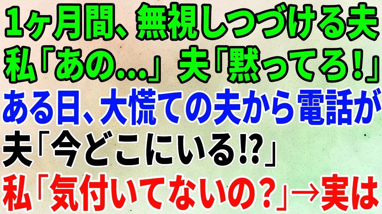 【スカッとする話】1ヶ月間、無視しつづける夫に私「あの…」夫「黙ってろ!」ある日、大慌ての夫から電話「今どこにいる⁉」私「気付いてないの?」→実は【修羅場】