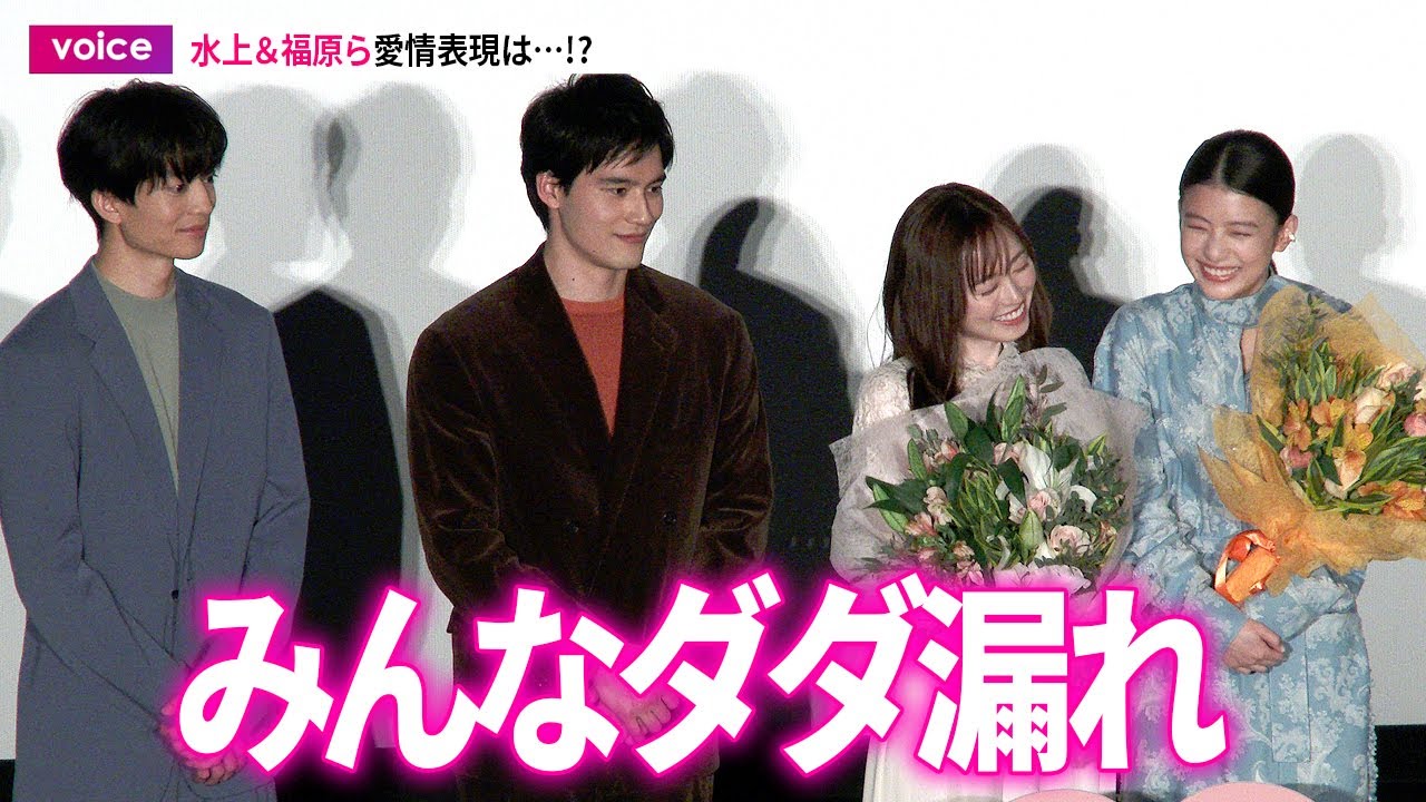 福原遥、水上恒司、伊藤健太郎、出口夏希が2月5日、都内で行われた映画『あの花が咲く丘で、君とまた出会えたら。』祝大ヒット!追い花御礼舞台挨拶に登壇。劇中でカップルを演じた4人。この日は事前に寄せられた質問に答えた。そのうちの一つ、愛情表現はどのキャラクターに似ているか?という問いに、4人揃って、秘めたる思いが周囲にだだ漏れの千代と重なるとした。