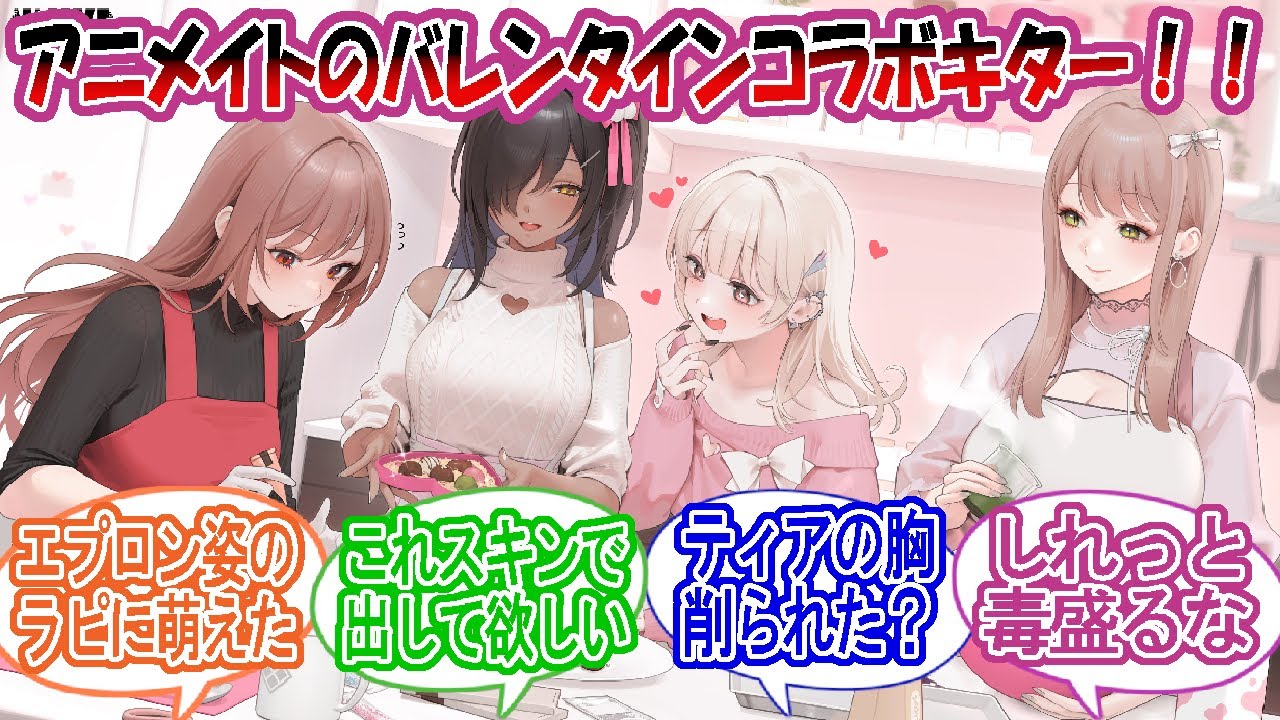 コラボ発売遅くないで去年も突っ込んだ 記憶があるな日本と韓国の差だよ人選が ようわからんだヒロイン枠のラキ料理枠の エお菓子枠のティアティアとセットの長 ごく自然な流れ去年の方がよくわからん 人選だった女子高生の仲良してあと アブソリュート仲良して片方は元だけど またナチュラルにネオンがいない可愛い けど緑の液体入れようとしてる人をまず 止めてあげて注意してみるとボールの中の 物体がすと紫色してるからすでに手れなん だ去年のバレンタインとはいえ今ユを見る と何とも言えない気分になっちまったわ長 は官に目線送ってんのかなこりゃ本命だな 癒しか女貝アニスネオがいい顔してる 頑張って四官の顔を描いてるらに素直にき なんですわティアはノーブラだから垂れて こうなってるグッズも出るんだよな運営の 推しなんだろうエマいらなくねなんか1人 だけ不人気キャラ混じってるのがあるわ エマは海外の方が人気あるらしいから何か と運営画をしてるエマはなんだかんだ人気 キャラだぞ立ち絵がどうとネタにされてる けど嫌いなやつはそうらんティアも地味に 立ちワーストイベントスチルの全てで別人 だよなエマとうんは絵で特に損してるよ クリスマスの時は2人とも可愛かったし長 もバーストは化してて人感が否めないこの スキン来たら無課金卒業 これだけがなれないお菓子作りを年下の手 や長に教わってるのかなだとしたら絵すぎ 教えるのはいいけどそのせいでエマガド フリーになってるぞ全員からチョコ渡され たらどれもらうか選べないよ全部もらって から1人ずつ順番に夜のちちインドに 決まってんだろういかがでしたかこの動画 が面白ければ是非高評価チャンネル登録 よろしくお願いし ます HV