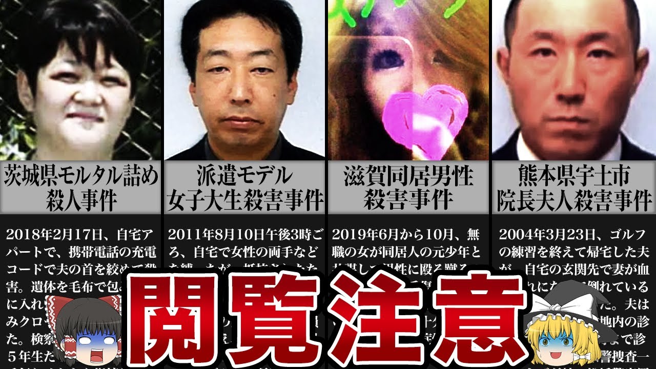対してのつみほの返答が辻の合わないもの だったらしいそこで茨城県警が周辺を捜査 していたところ行方不明届提出後に離婚届 を出したことが発覚鑑定したところ離婚届 の署名はaさんでも美保でもない人物の 筆石であることが判明それを受けて固く 捜索に踏み切った県警が自宅のアパート 室内でAさんはどこにいるんだと尋ねた ところみほがここにいると指差した先は クローゼットだったらしい尋ねた警察官も もしかして殺されているのかもと想定して たかもしれないけどまさか室内に遺体が 隠されているとは思っていなかったかもね 確かになそれに事件当時美保は夫のAさん と2人暮らしというわけではなかったんだ え誰か同居していたの12歳の長女と4歳 の双子の男児との家族ご人で暮らしていた そうだちなみに事件当時妻みほの年齢は 44歳で夫のAさんは33歳だったんだぜ 子供たちは全員Aさんとの子供はっきりと はしないがどうもそうらしいなということ はみほは子なしで再婚したということ子供 を連れていないというのは正しいが子なし というのはちょっと違うんだえそれは一体 どういうことな のそれを説明するには犯人のつまみほのお いたちや経歴を自系列に追っていくのが 1番だなまず犯人のうみほはさっきも紹介 したがこの時点で44歳東京の多地域で 生まれ育ったらしい小学校1年の時に実 父母が離婚し父の手で育てられるものの3 年後にその父が亡くなる小学4年生で 引き取ってくれていた父親が死ぬなんて ショックだったでしょうねその後は実母に 引き取られて中学を卒業したんだが進学は しなかったらしい中学時代の後輩によると 勉強はできず不登校気味で盛り場を うろつくようなところがあったものの面倒 身の良い姉御肌のところがあって友達も 多かったそうだぜそれで進学せずに就職し たのアルバイトのような職を点々としてい たという話もあるがこの頃最初の結婚をし 子供を設けているんだえ子供でもそれだと 年齢が合わないんだけどああこの時産んだ 子供は事件に加担した長女とは違う子供な んだそうだしかし結婚生活は長くは続かず 18歳の時には最初の夫と離婚したらしい じゃその時の子供は事件当時25歳くらい になっているから別に暮らしてい るってことああ実はみほは最初の結婚から 今回の被害者Aさんと結婚するまでに通算 3回の結婚と離婚を繰り返しているん だそうして2003年頃出会系サイトで 今回の被害者であるAさんと知り合ったん だ2003年というと事件の15年も前よ