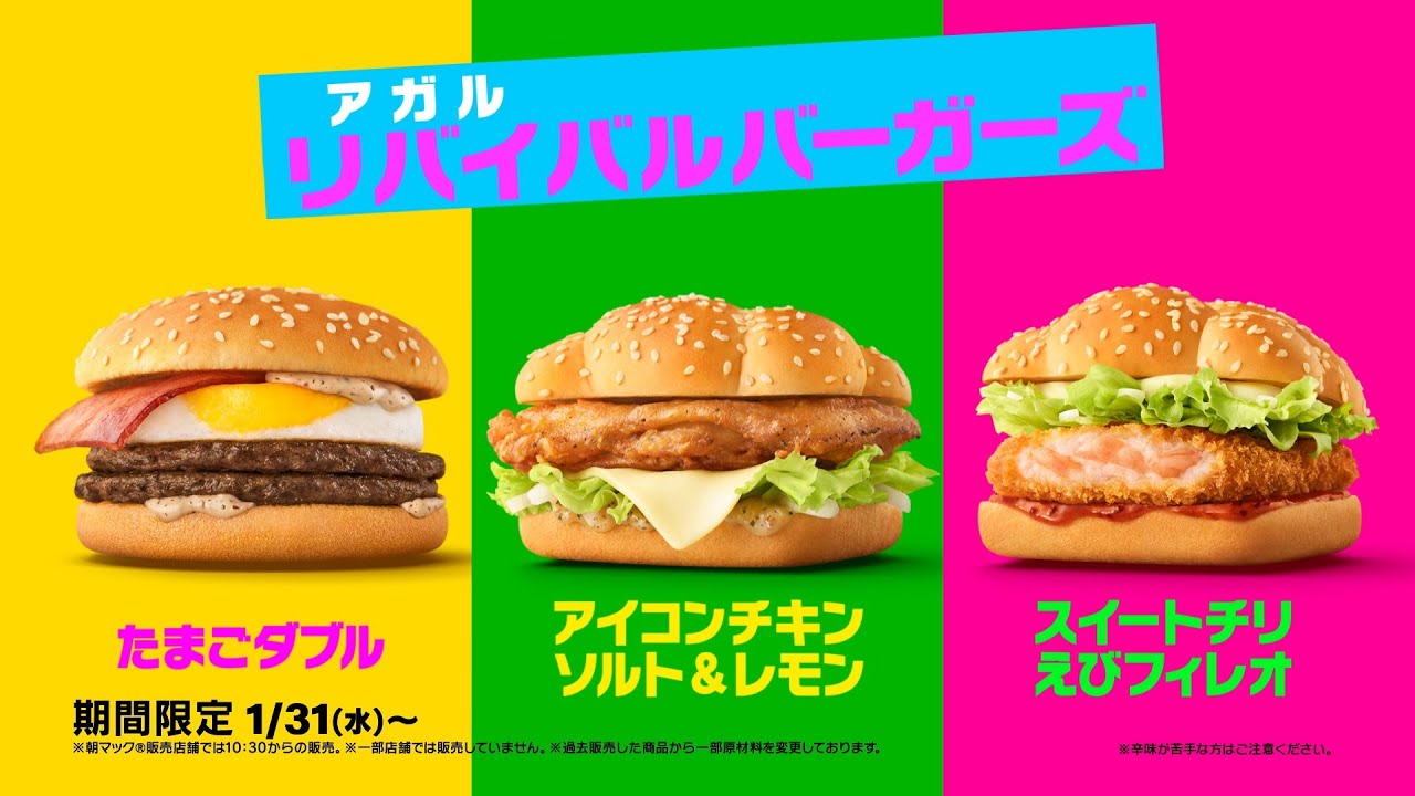 大人気バーガー「たまごダブル」「アイコンチキン ソルト&レモン」「スイートチリえびフィレオ」3つの商品が復活!