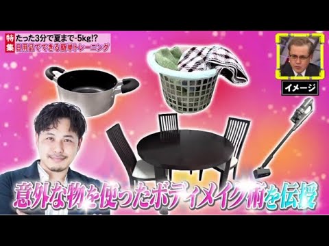 の素敵なコメンテーターをご紹介します まずは女優の蔭山優香さんですよろしくお 願いいたしますよろしくお願いします そしてもう1方お笑い芸人アルコ&ピース の平子ゆきさんですよろしくお願いします よろしくお願いしますお願いします早速今 のテーマ発表しましょうこちら です去年驚くべきデータが公開されたそれ は2035年までに世界の人口の半数が 肥満または過重に分類されるというもの 日本においては男性が 33%女性には22の肥満が存在している と いうそこで今夜はアサ化で一家を守る貫禄 ボディパパアルコアピース平子さんに身近 にある意外なものを使ったボディメイク術 を伝授していただき ますさそれではここから平子さんに進行を お願いしたいと思っておりますはいりまし たそれでは参りましょうRP平子のあの トレーニングはですねえっと配筋の方に 効果がありますえ健康コツを引き寄せて いただくことで高配金に刺激を与えれる ことができるこの姿勢強制効果っていう 部分も期待できるんじゃないかと思います はいはええなるほど そう です日子さんのコーナなんでできればすい ませんついちょっとあでもくなってしま なんかよしよしサポートいただけたら僕も はい嬉しいですあるある程度でお願いし ます あくまでもね今日は平子さんのはい気を つけますすいませ んそれではペットボトルを使ってハキを 鍛えていき ましょう手をゆっくりと上げ てここでキープこれが10回でいいんでし たっけそうですねえ せえ野田あれえあれ野田さんさんですか 野田あれおますいやあのおますはいいつ 呼ばれんのかなって はいえ何がずっと待ってたんですけど も全力脱力タイムズ はご覧のスポンサーの提供でお送りし ますおこんにちは初めまして初めまして実 は私本飲んでます初めて飲んだのは 仕事終わりで疲れの本気はおいしかった これ作った人天才ですね3万回も試す らしい3万 回あおいしいだよね趣味渡ります新しい本 キリ始まるあなたの今日にぜひ3万回かお 疲れさんでし たねみちゃん何とく想像してみて壊れた 掃除機がジャパネットの下取りで3万円分