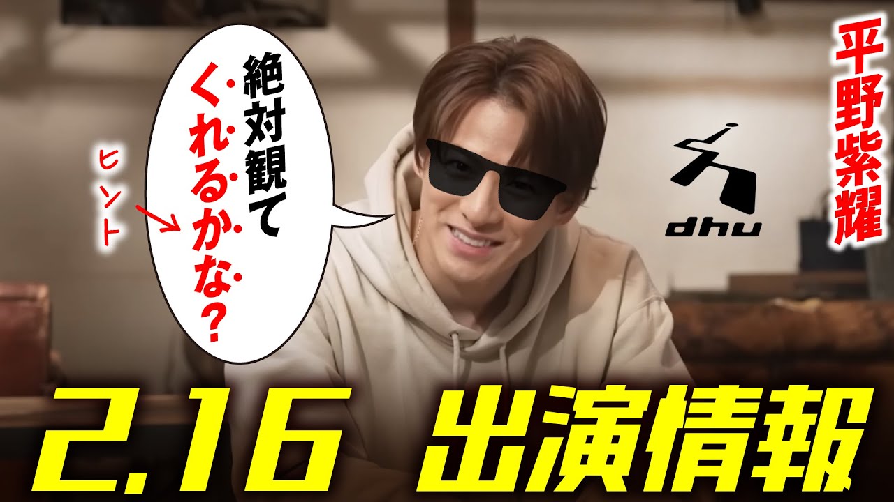 【平野紫耀】出演情報 2024年2月16日金~DHU 60秒スペシャルTVCM放送詳細