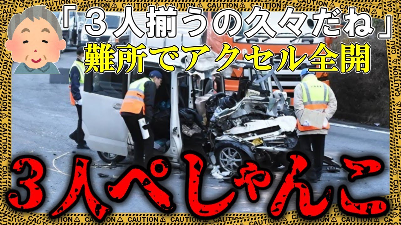 などっちにもお互いが見えていなかったの ねこの事故が報道された時ネットでは どんな意見があったのかしら軽で坂道だと アクセル踏みすぎて坂が緩くなった瞬間に 急にスピード出るよな3人も乗ってたら あのべた踏みだったかもスピード落とすと 止まるかもって思って踏み過ぎたんじゃ ないかアクセルの踏みすぎに関する意見が 多いわね軽自動車での坂の登りに草屋3人 乗っていた重さについても言及されている なこの軽自動車のパワー不足での坂道の 運転の難しさは多くの意見があった実際に 現場を走ったことがある人もあの場所で軽 自動車に3人も乗っていたら坂道を登るの はかなりきつかったのではという意見が かなりあった実際に走ったことがある人も 道がきついってことは実感していたのね他 にはこんな意見もあったあそこカーブも 怖いよね場所によっては先が全然見えない ようなヘアピンカーブもあるスキーバス 現場からすぐそこじゃんここは本当に事故 多い可能なら通らない方がいい怖い道だと いう意見が目立つわ事故の多い道である ことから危険な道という認識をされていた んだ薄いバイパスと聞いてからいざは スキーバス事故を思い出した人もかなり 多かったようだなあれだけ有名な事故に なるとその現場近くは怖く感じるわよ [音楽] ねこんなひどい事故で車に乗っていた人は どうなってしまったの軽自動車は事故の 瞬間トラックに当たって20mも飛ばされ ている軽自動車の重量が700kmほどだ としてそこに成人男性が3人乗っている からこの時の軽自動車の総重量は 900kmかそれ以上の重量があったはず だ900kmが吹っ飛ぶ衝撃ただでは済ま ないわね中にめり込んだ車体が前の席いた 人間の足や腰を押し潰す足は車の部品に 潰されて骨がくだけさらに皮膚をちぎって 筋肉もブチブチと押し潰し大量に出血した もう動けないじゃない腰は前からの衝撃で 後ろに押され骨盤が折れて下半身は動かせ なくなる腰の周りには神経がたくさんある から激痛が運転手を襲ったさらに割れた ガラスは容赦なく前の席に降り注いで顔を かめて列しを追い服の中に入り込んだり 座席に散らばった顔の怪我もだけど服にが ガラスが入り込んだら体も切れてしまうわ 何もさえぎるものがなくなった前の席では 車のパーツも飛んできて頭にぶつかり骨折 や激しい揺さぶりで脳に大きなダメージを 追ったんだ車体が押し潰されたことで ハンドルが運転手の方に競り出した運転手 はそのハンドルに押されて胸を強く圧迫さ