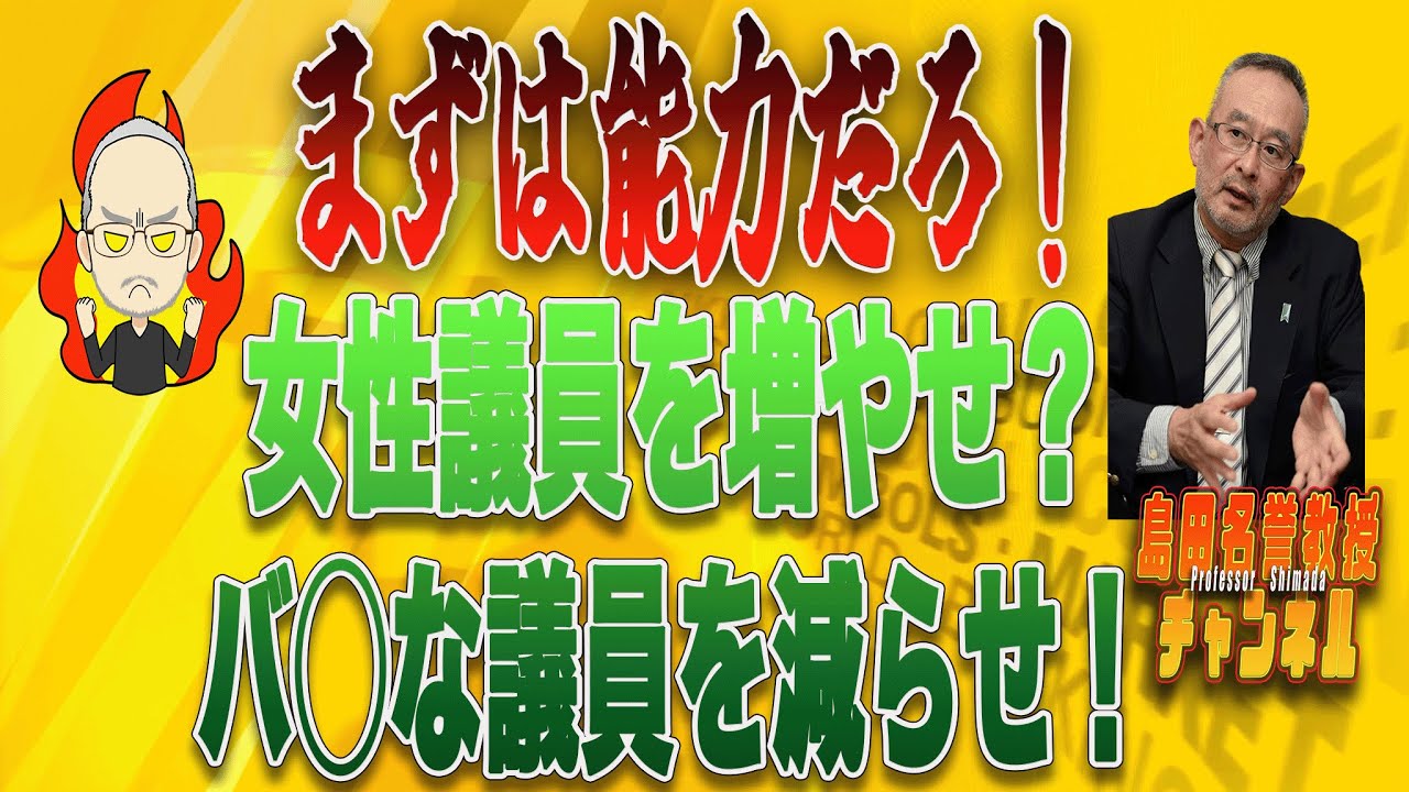 島田名誉教授チャンネル まずは能力だろ!女性議員を増やせ?バ◯な議員を減らせ!