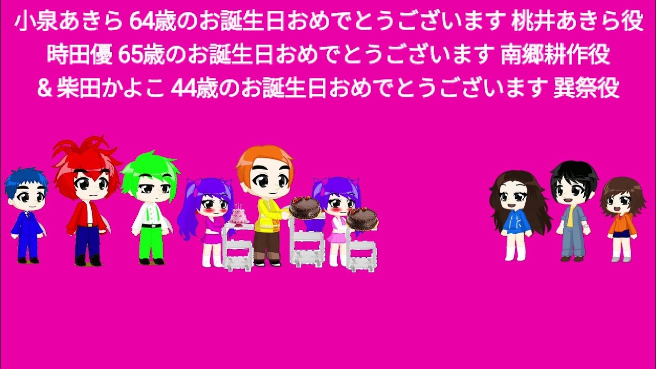 小泉あきら 64歳のお誕生日おめでとうございます 桃井あきら役、時田優 65歳のお誕生日おめでとうございます 南郷耕作役、&柴田かよこ 44歳のお誕生日おめでとうございます 巽祭役