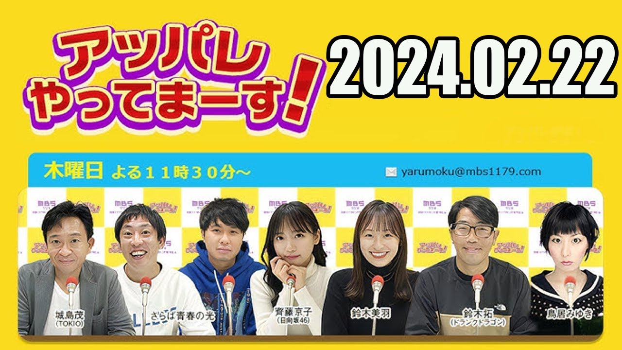 【2024.02.22】アッパレやってまーす!木曜日【城島茂(TOKIO)、齊藤京子(日向坂46)、鈴木美羽、鈴木拓(ドランクドラゴン)、鳥居みゆき、ビビる大木】