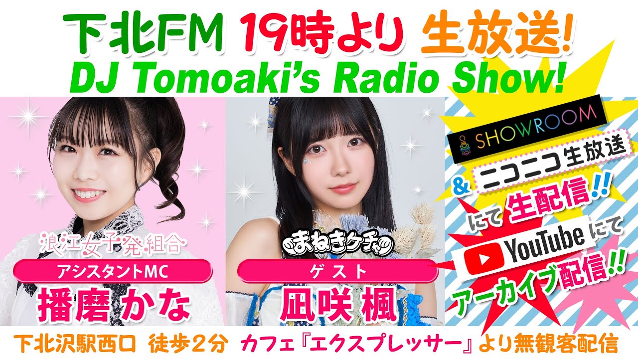 下北FM!2024年2月22日 DJ Tomoakiʼs Radio Show! アシスタントMC:#播磨かな(#浪江女子発組合) ゲスト:#凪咲楓(#まねきケチャ) ほか