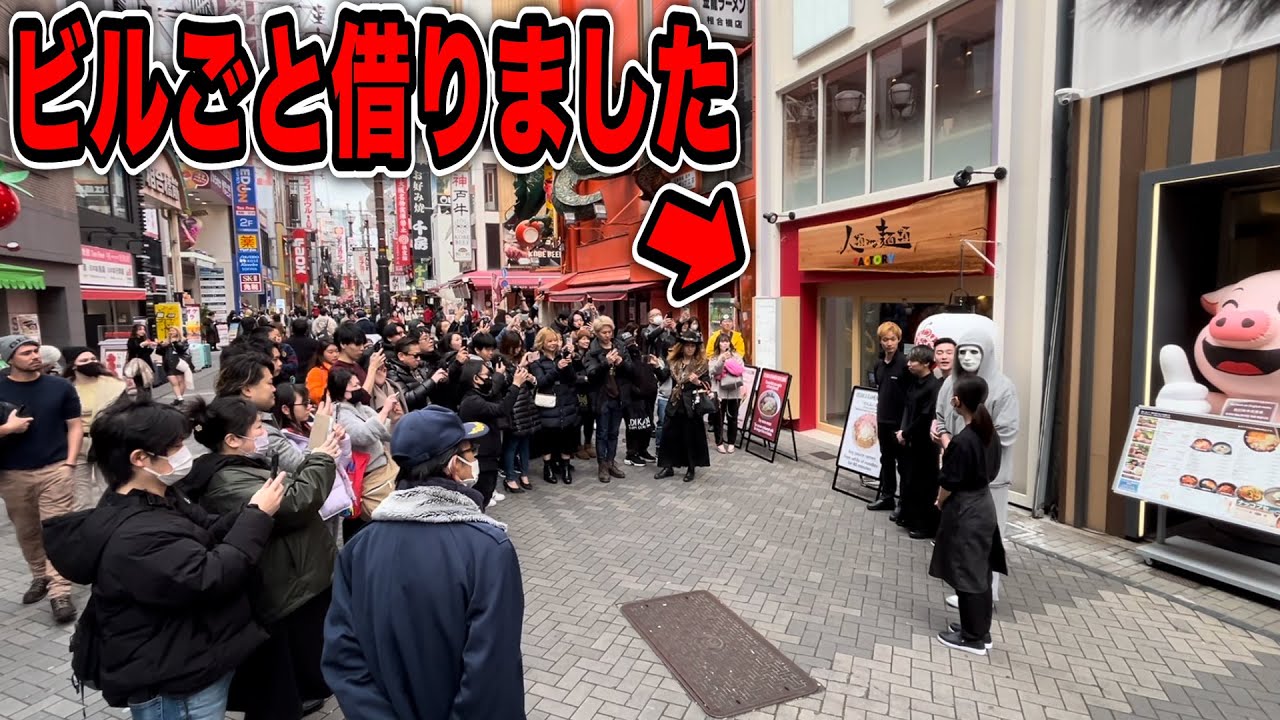 どうも皆さんこんにちはえ田中南を ちょっと不細工にした感じですよねあだ からその性格がうざい感じだけ残ってます よろしくお願いします願今日なんですけど あの大阪の方に来ましてえ実はですねえ あのラーメンのあの今日ちょっとイベント なんですけどこの2日酔いで全く頭回り ませんはいしんどいです我々カメラマン ともどもはい同じくですしんどいっす朝 起きたら隣に知ら女いましたしんどいっす 本当に本当にしんどい本当にしんどいです ね本当にあのですねえっと人類み塁さんと えラファエル転場させていただいて一緒に 会社を作ってですねえ正規松のく祭りって いうラーメン屋さんを出しましたはいで ですねどうせやるんやったらまえ1月 ぐらい年末ぐらいオープンしてでどうせ やるんやったらってことで1店舗これ大阪 に出したんですよ東京と大阪とで大阪の方 どうせやるんやったらもう全部ビルごと 借りちゃってラーメンビルにしちゃうと ことではい今回ですねビルごと全部回送し ましたはい結構すごいことなってます本当 にあのね元々ねはいこっちなんですよ元々 は最初1店舗出させていただいた時は こちらのこの添え門通りですねはいまここ あるじゃないですドンキホテとかここねの こっちだった元々元々はこっちですさ ラーメン買た40分食べ放題正マのコ祭り 元々こっちだったんですけどこっちだけだ と面白くないてこのビル1等足りました これやばいっすよくない1等すよはい本気 でしょラーメンにはい一等借りて全部内装 を入りましたやばいっすねラーメンは本気 でしょはいで入り口がこっちのメイン通り になったんですよはいで地下1階2階3階 あるんですよねそうですで人類南面さんと ラファエルの正規町の攻祭りとま今った 期間限定で上原さんのラーメンですね塩 ラーメンていうドゲ下ネタラーメンとこの 3つがですねどこの貝でも食べれ るっていう要は本当にラーメンビルなん ですよねはいあもうお客さんすごい並んで あるわ見てて見 て回転らして回転らしていやそんなできな いっすよ回回転らしてそ嫌がらせしよら人 にやがらすすな生きていかれへん最悪や いやすごい並んである見て見て見てね SNSすごいあすごい並んでるでも今日は あれなんすよはいあとうちのカレーパンと のコラボなんすよあそうや今今日なんで来 たんかこれわからんかった今日カレーパン とのコラボなんすねそうカレーパンと コラボカレーラーンすああ これ見てやばいっすすごなビ一等やばない